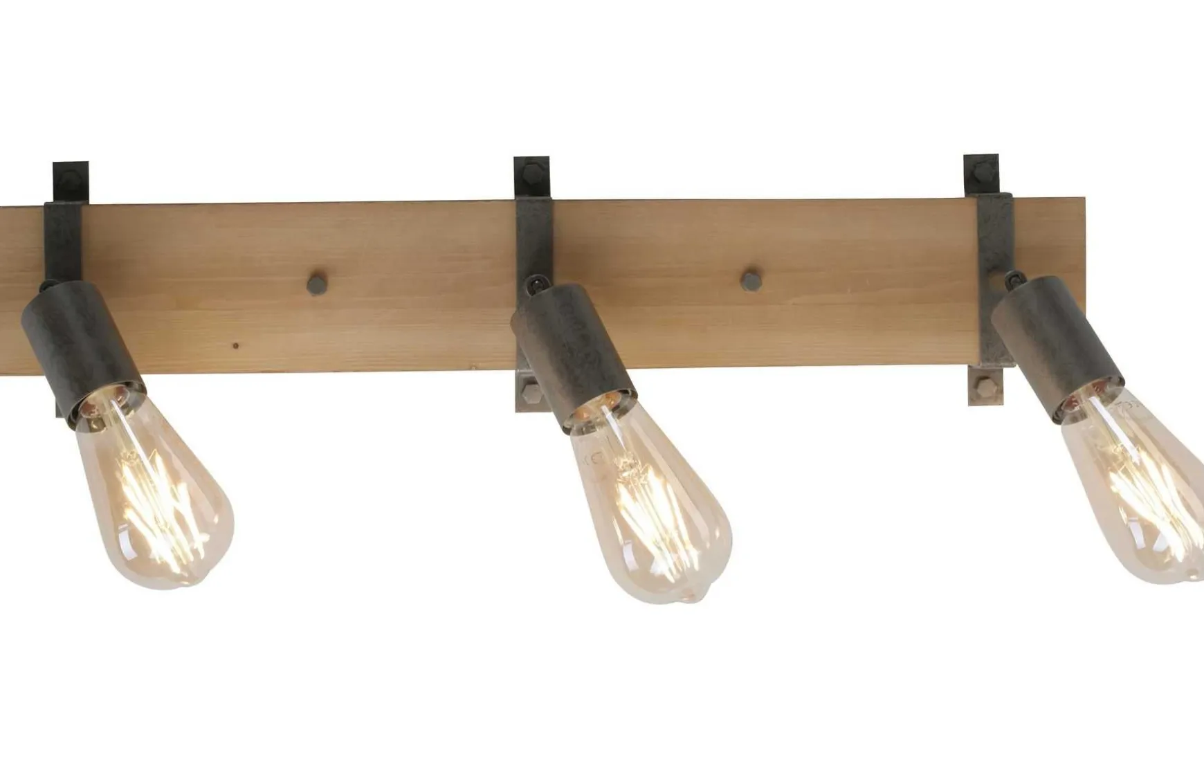 Die Kombination aus Holz und Metall lässt die Deckenleuchte gleichzeitig rustikal und modern wirken und passt sich vielen Einrichtungsstilen gekonnt an.