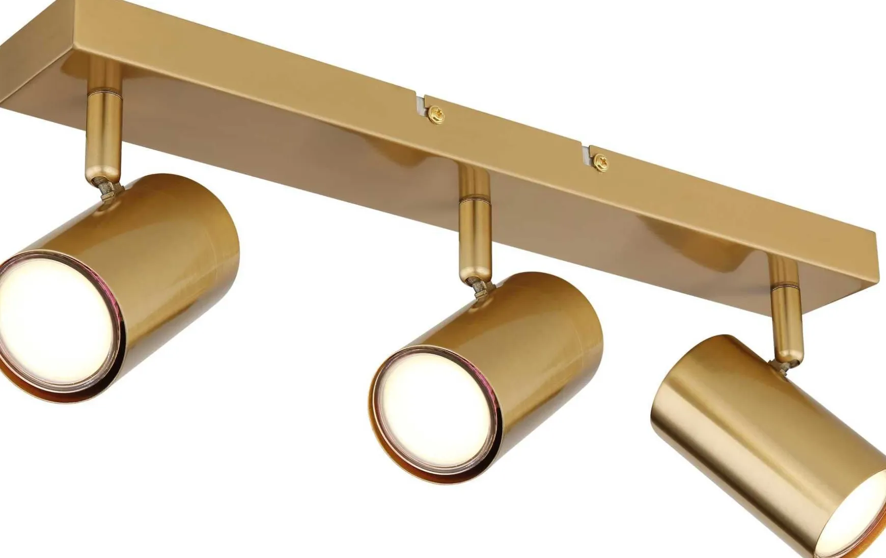 Dieser Strahler bestehet aus goldfarben gebürstetem Metall und ist mit 3 GU10-Fassungen ausgestattet. Bitte beachten Sie, dass das Leuchtmittel nicht im Lieferumfang enthalten ist. Sie benötigen 3 GU10-Leuchtmittel mit einer Leistung von 35 Watt und einer Spannung von 230 Volt. Der Strahler ist ein echter Hingucker und wird in jedem Raum zum Highlight. Mit der einzigartigen Kombination aus modernem Design und hochwertigen Materialien wird er garantiert zum Blickfang in Ihrem Zuhause.