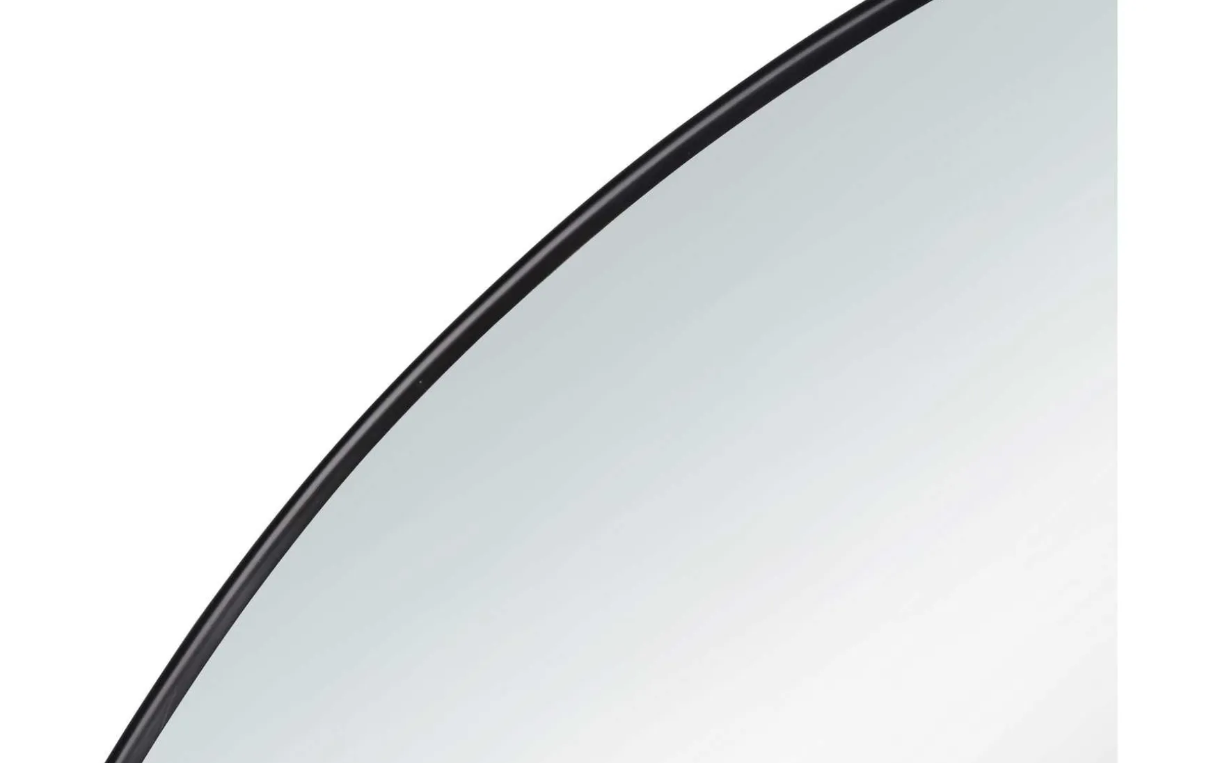 Sein ovalförmiges Design wirkt durch den schmalen schwarzen Metallrahmen puristisch elegant und fügt sich jedem Wohngeschmack.