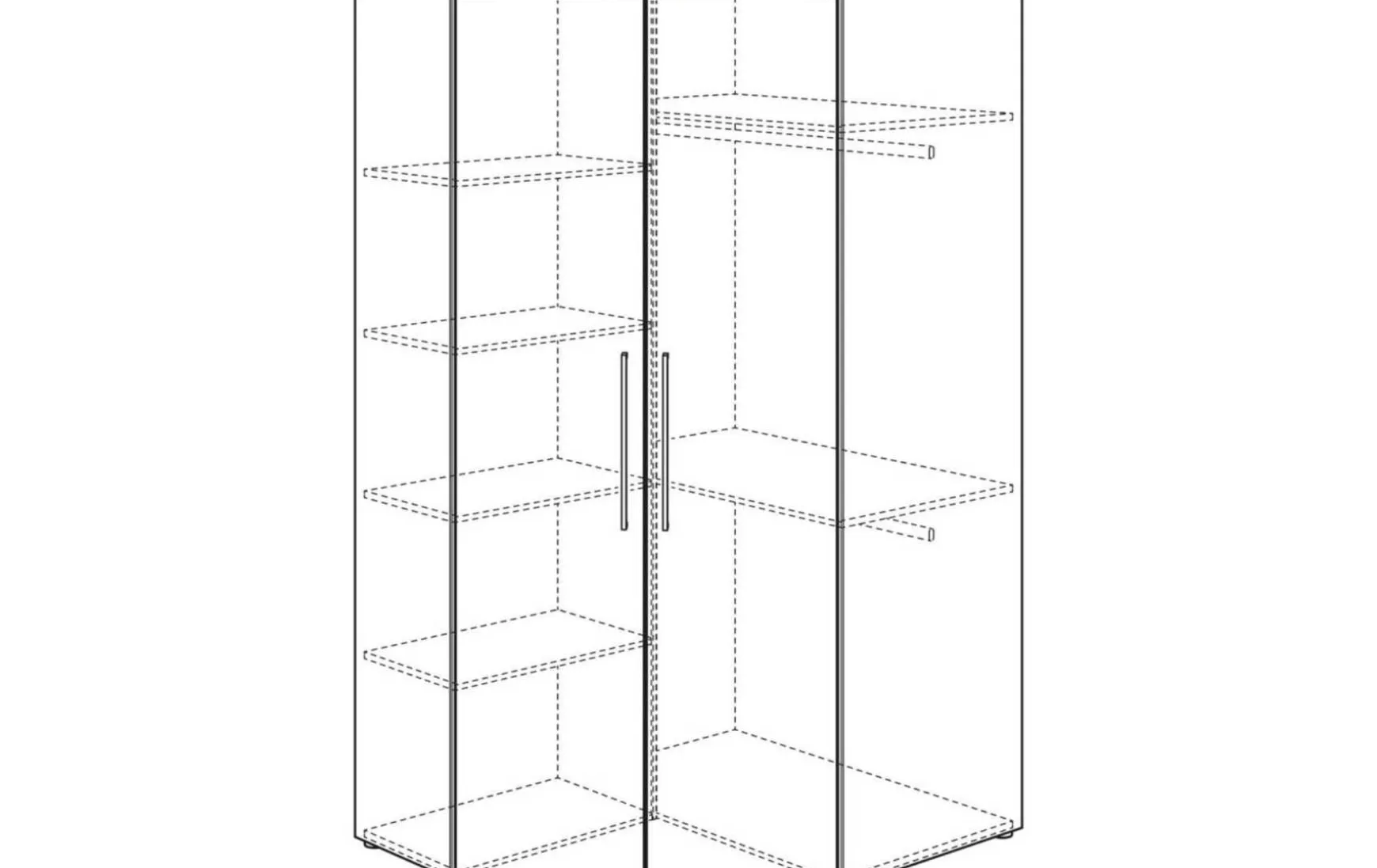 - Bestehend aus: 2 Türen, 4 Einlegeböden, schmal 2 Einlegeböden, breit 2 Kleiderstangen