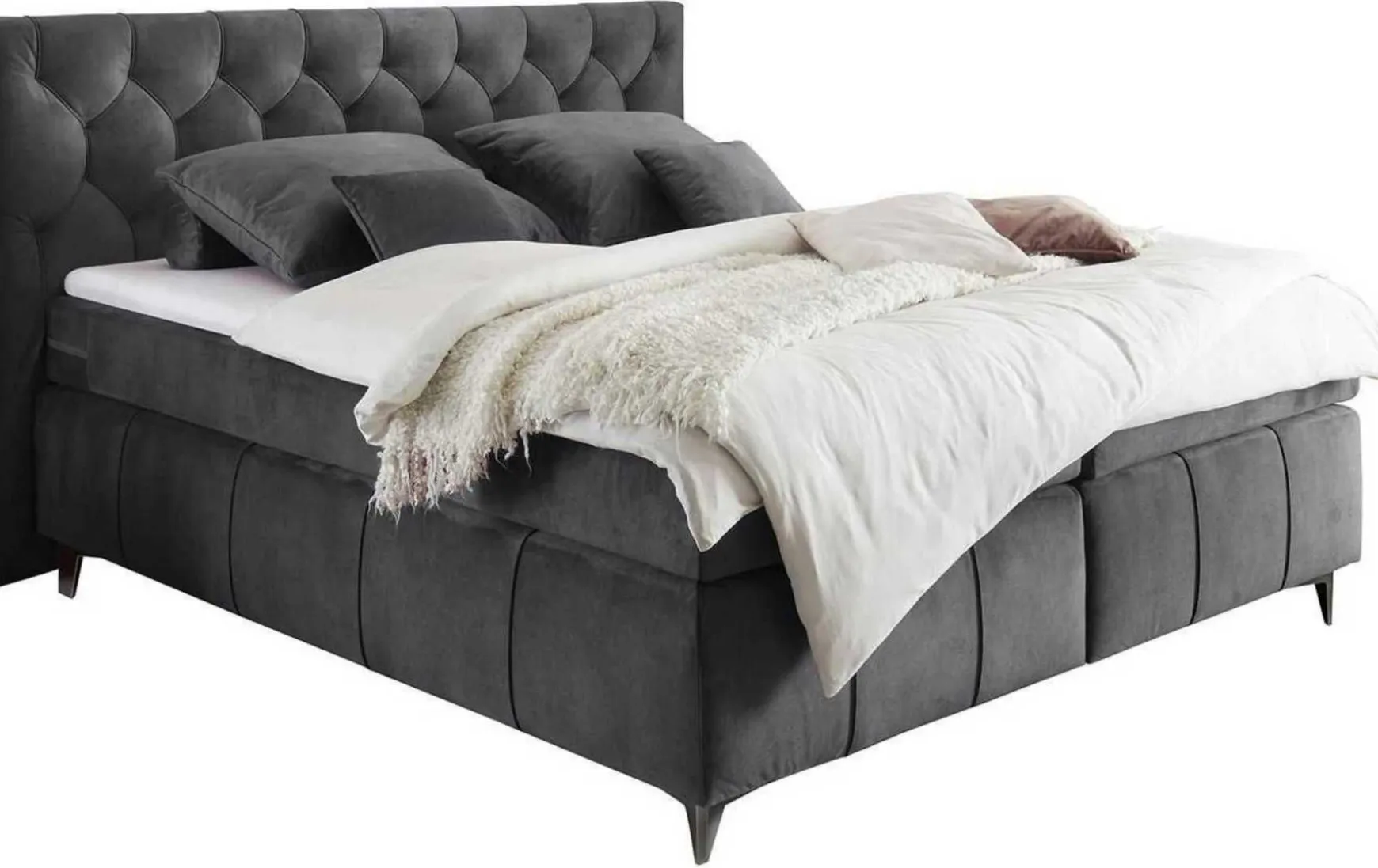 Dieses gemütliche Boxspringbett ist ein Highlight in jedem Schlafzimmer. Die Steppung im Kopfteil lässt das Bett besonders edel aussehen. Aufgebaut ist das Bett mit einer Box aus Federkern, darauf liegt eine Tonnentaschen-Federkern-Matratze. Zum Abschluss folgt der weiche Topper mit Klimaband, den Sie bei bis zu 40°C waschen können. Design, Qualität und Komfort – hier wurde wirklich an alles gedacht!