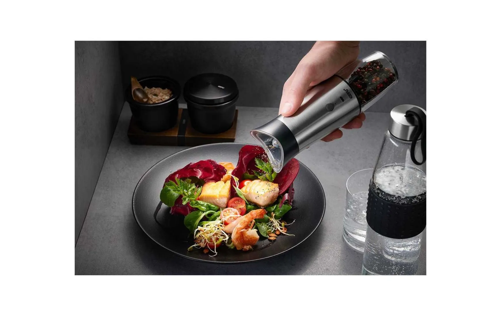 Mit leistungsstarkem, wiederaufladbarem Akku und integrierter LED-Beleuchtung zur optimalen Kontrolle der Würzmenge.