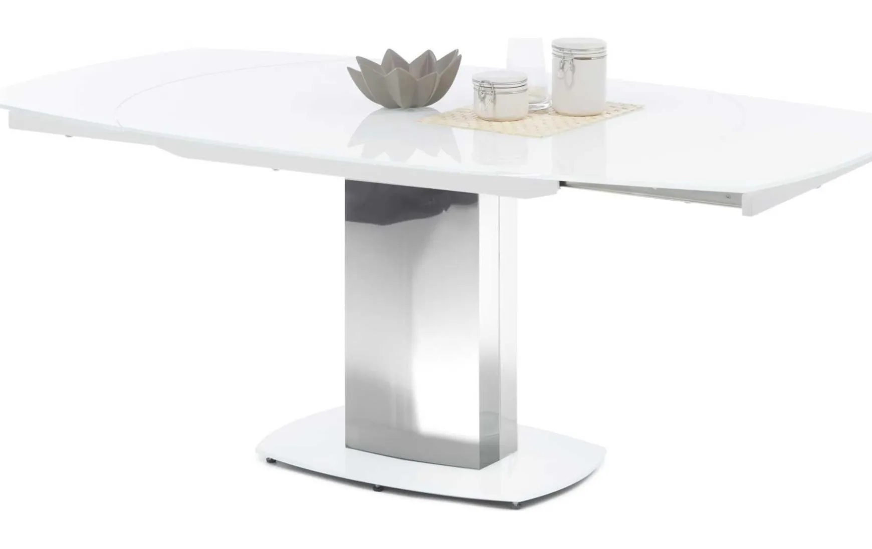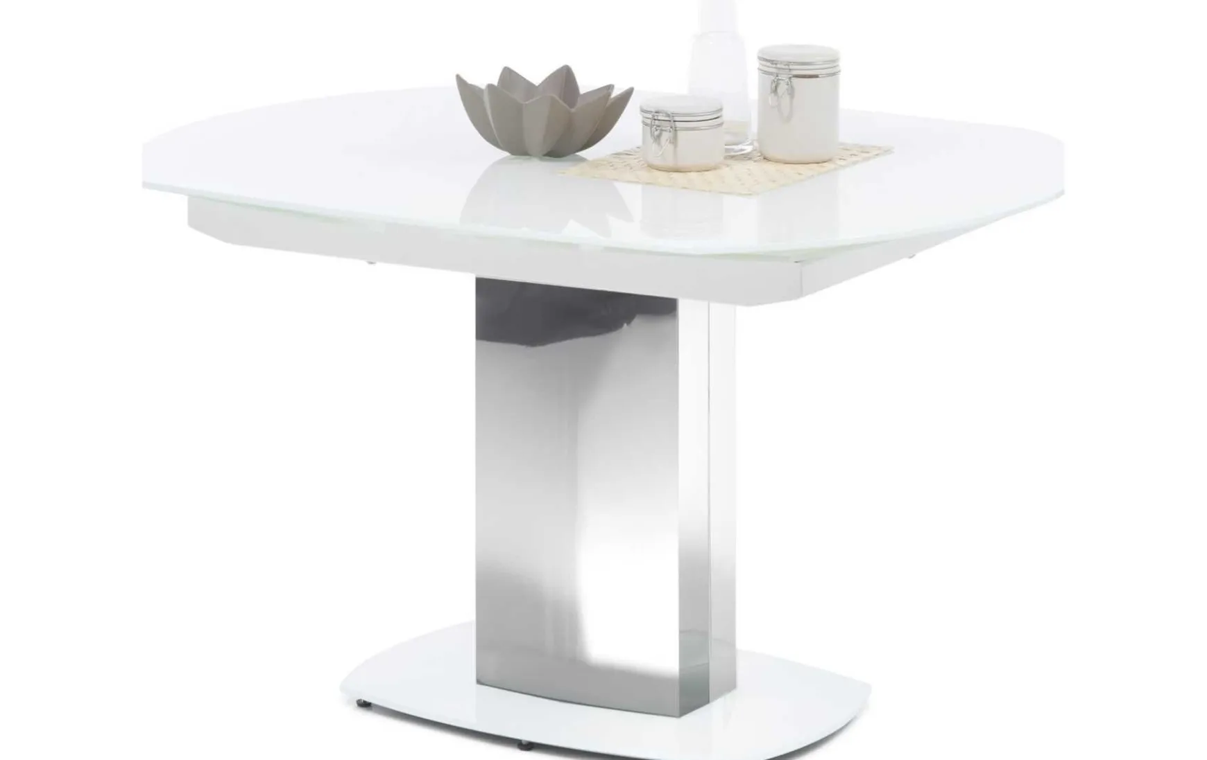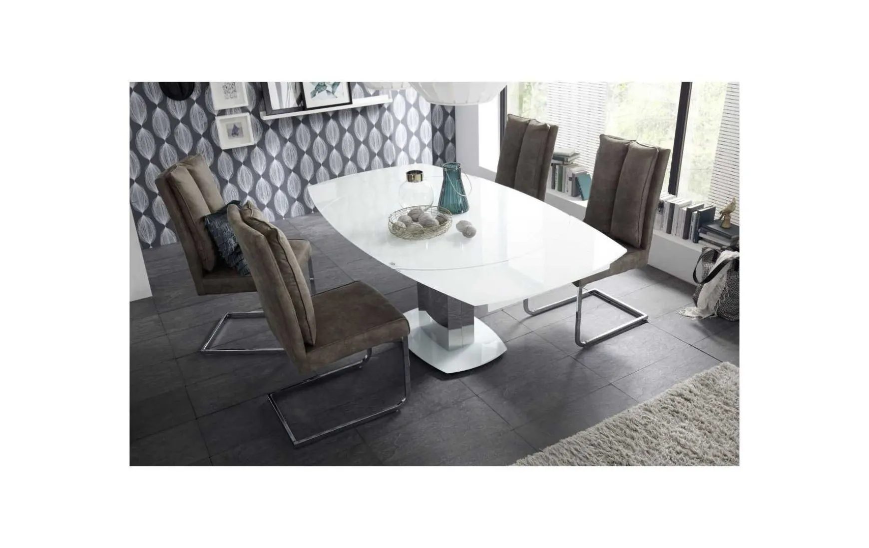 Dieser Esstisch überzeugt mit seiner am Anfang eher kompakt wirkenden Größe von ca 130 x 100 cm, ist aber ganz bequem und einfach auf eine Größe bis zu ca 190 x 100 cm ausziehbar. Die Tischplatte besteht aus 10 mm Sicherheitsglas welches einen eleganten Flair in Ihr Zuhause bringt. Schauen Sie vorbei und überzeugen Sie sich selbst.