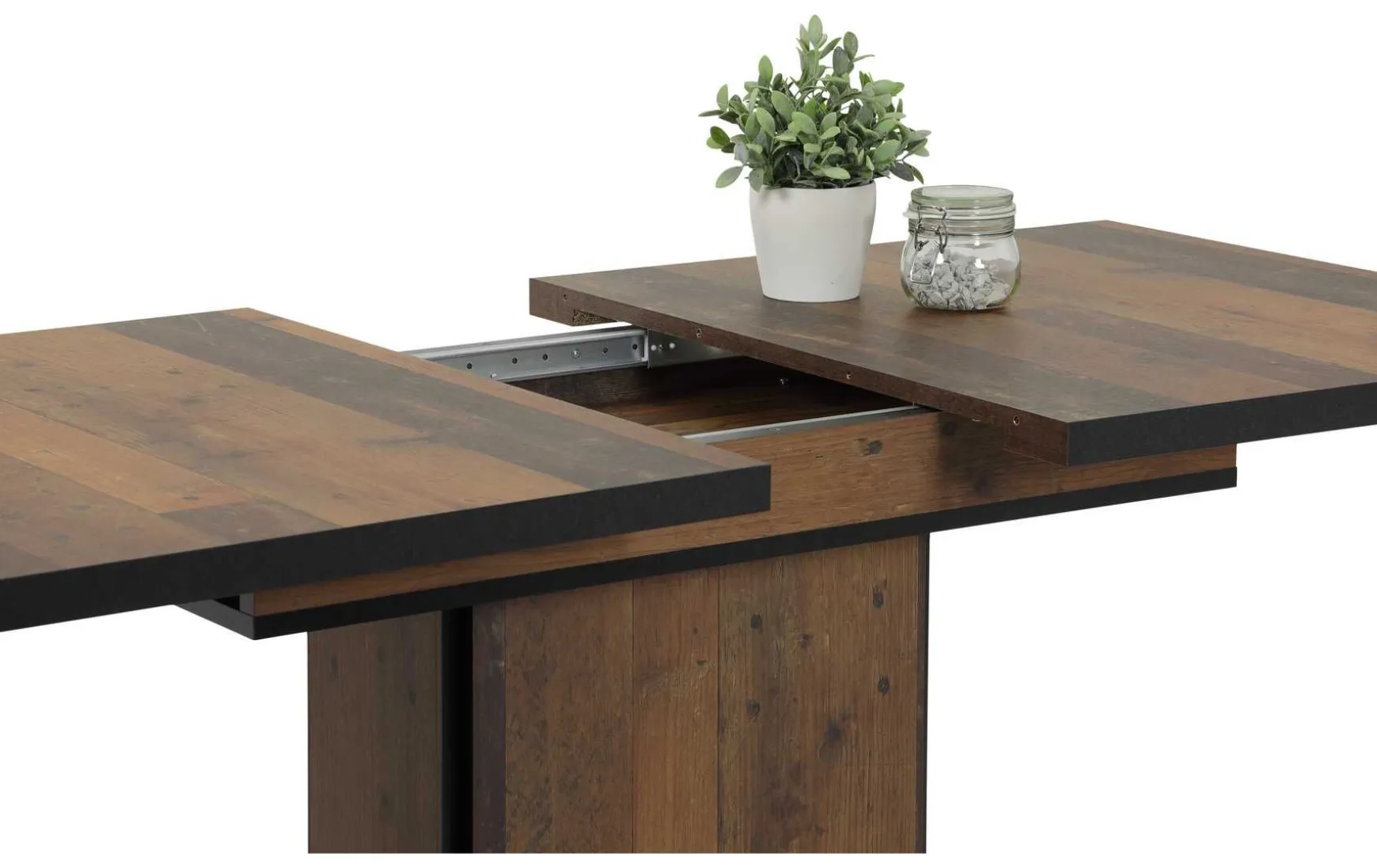 - Anmerkungen: Tischplatte ausziehbar mit arretierung und innenliegende Einlegeplatte, Tischkanten farblich abgesetzt in schwarz