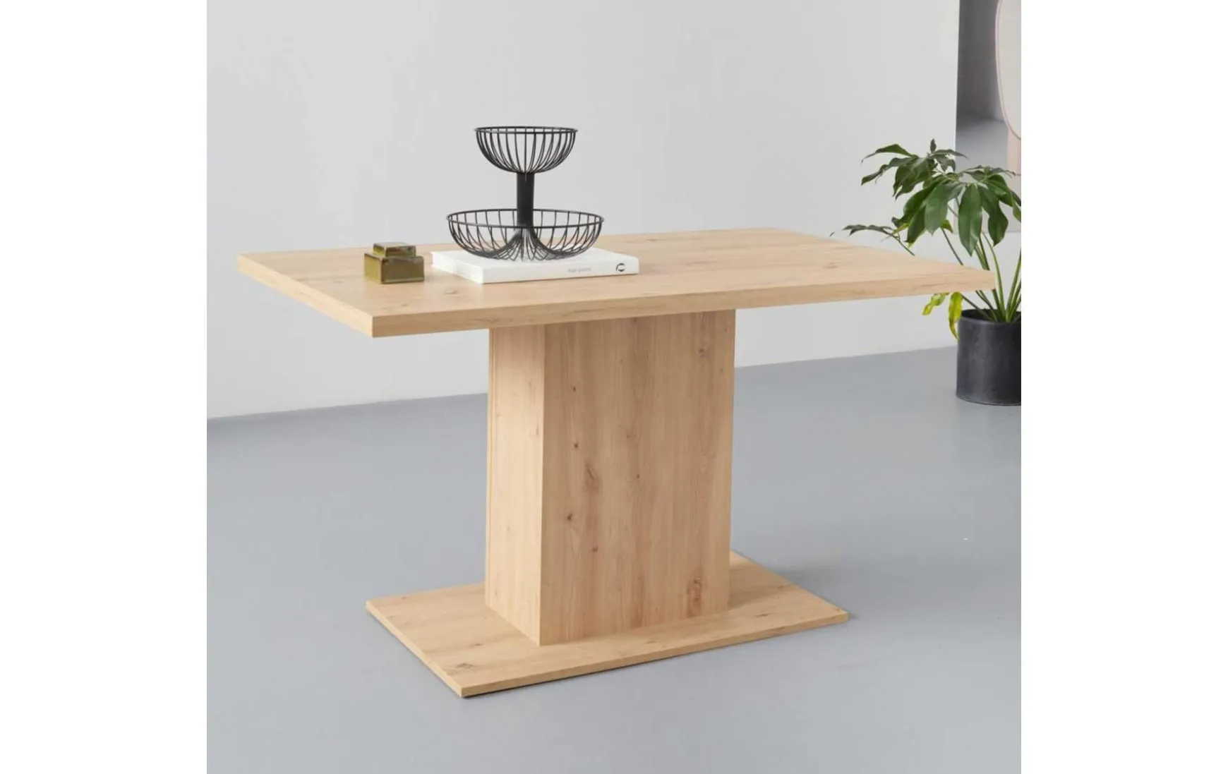 Der moderne Esstisch in Artisan Eiche überzeugt durch sein zeitloses Design und seine funktionale Größe. Mit seinen Maßen von ca. 138 × 80 × 76 cm bietet der rechteckige Esstisch ausreichend Platz für gemeinsame Mahlzeiten im Alltag. Die hellbraune Oberfläche in Artisan Eiche verleiht dem Tisch eine warme, natürliche Ausstrahlung und lässt sich vielseitig mit unterschiedlichen Einrichtungsstilen kombinieren. Gefertigt aus hochwertigem Holzwerkstoff, ist der Esstisch robust und pflegeleicht und kann einfach mit einem feuchten Tuch gereinigt werden. Der Tisch wird vormontiert geliefert und ist zur Selbstabholung in der Filiale vorgesehen – ideal für alle, die einen stilvollen und praktischen Mittelpunkt für ihren Essbereich suchen.