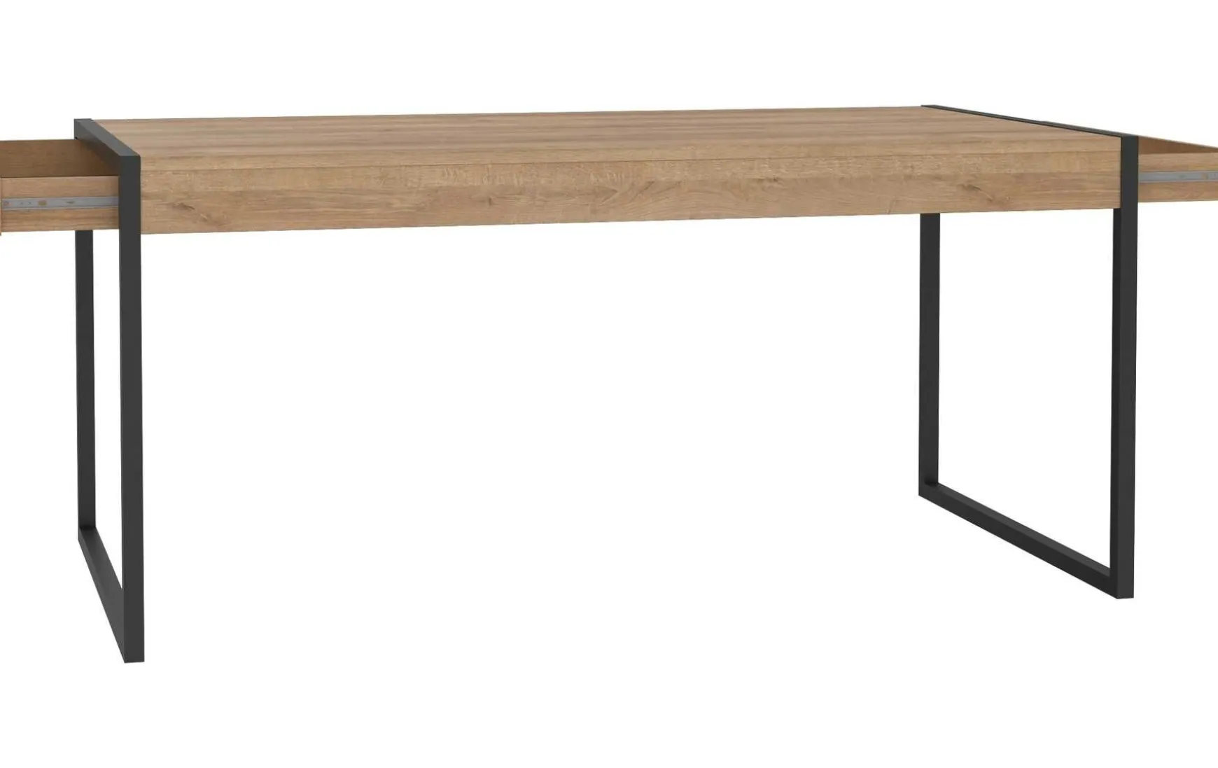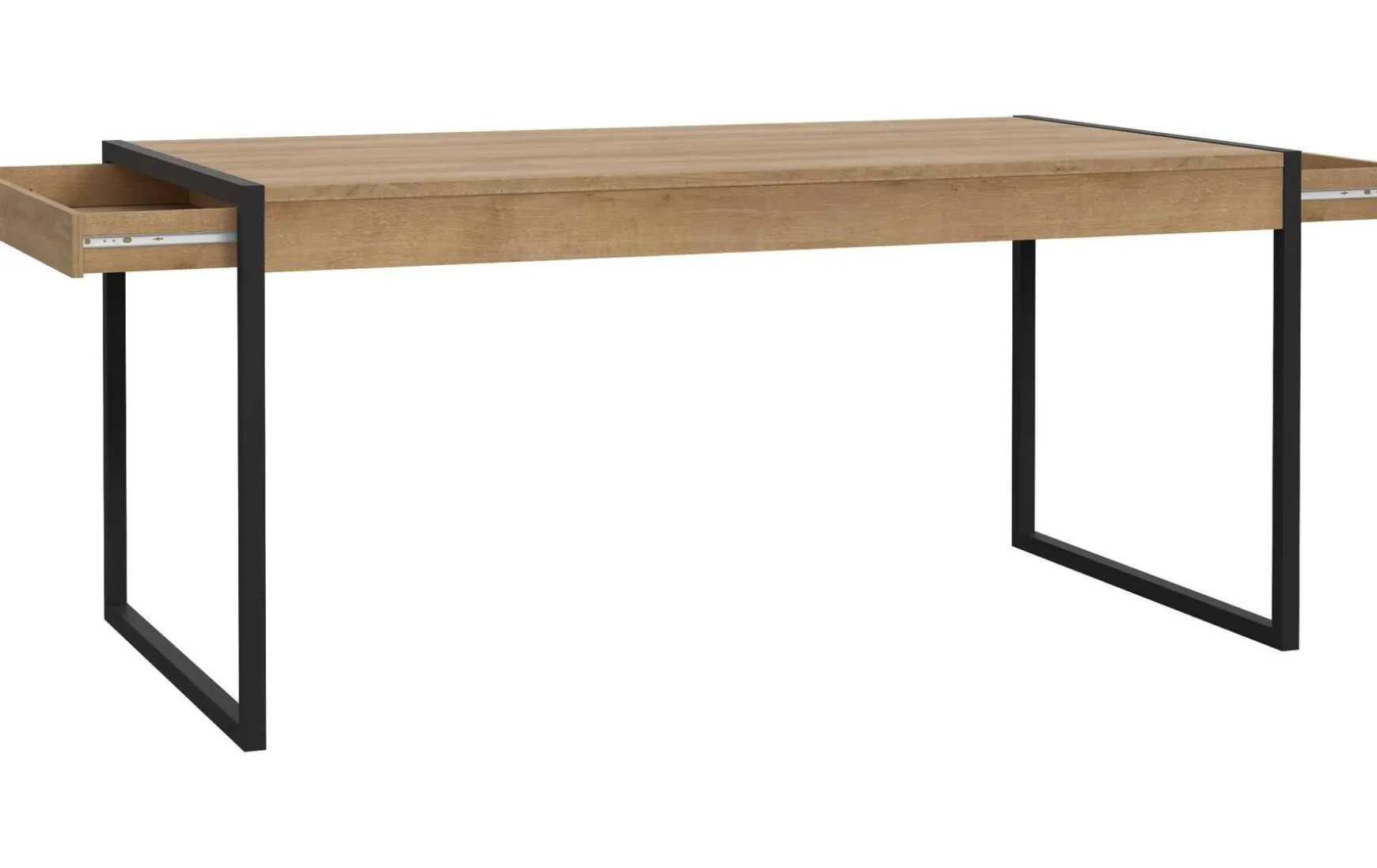 Dieser Esstisch in Riviera Eiche verbindet modernes Design mit hoher Funktionalität und ist ideal für Esszimmer oder offene Wohnbereiche. Die Kombination aus warmer Riviera-Eiche und schwarzem Metallgestell verleiht dem Tisch einen zeitgemäßen, eleganten Look, der sich harmonisch in unterschiedliche Einrichtungsstile einfügt. Der Tisch ist mit zwei Schubladen an den Stirnseiten ausgestattet, die praktischen Stauraum für Besteck, Tischaccessoires oder Servietten bieten. Mit den Maßen von ca. 166 × 90 × 77?cm (B/T/H) bietet der Tisch großzügig Platz für Familie und Gäste. Die Oberfläche ist pflegeleicht und trocken abwischbar, wodurch der Tisch besonders wartungsfreundlich ist. Gefertigt aus Riviera-Eiche Tischplatte und Metallgestell, ist der Tisch stabil, langlebig und belastbar. Er wird zerlegt geliefert und kann individuell konfiguriert werden.