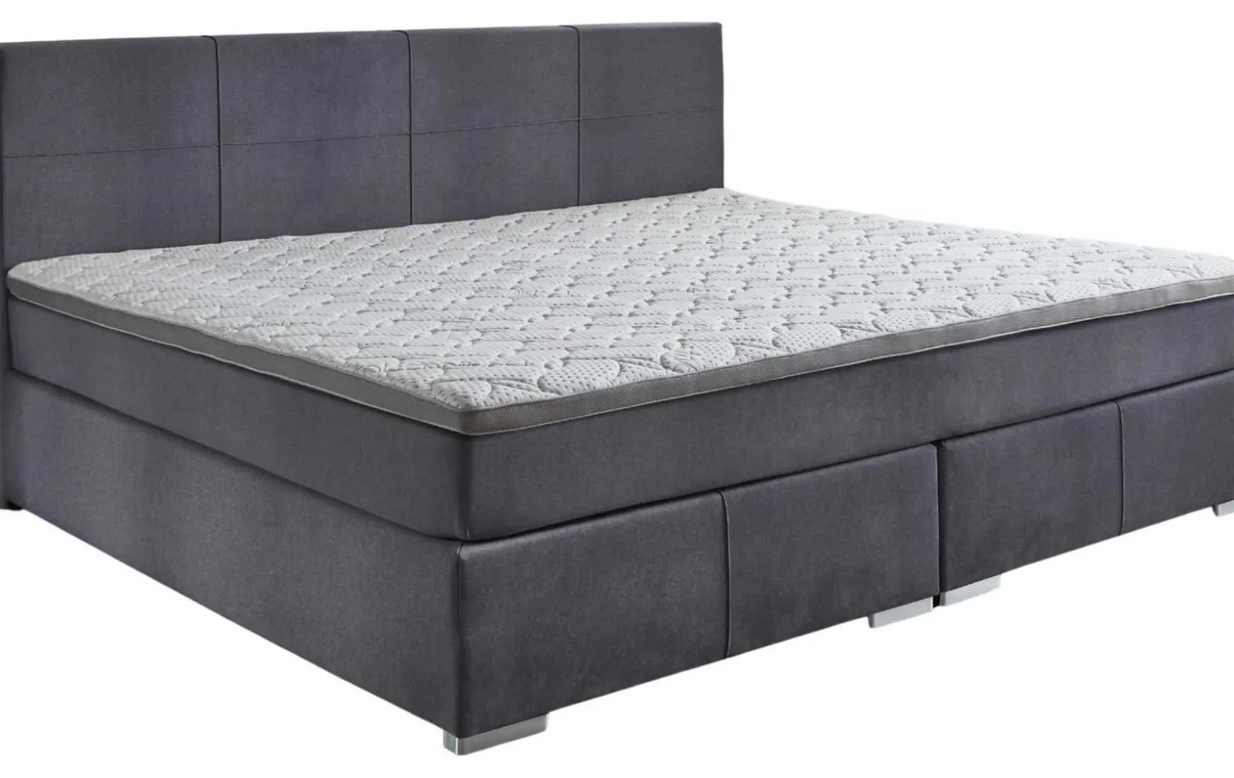 Das Familien-Boxspringbett mit extra breiter Liegefläche bietet maximalen Platz und hohen Schlafkomfort für die ganze Familie. Die großzügige Liegefläche von ca. 240 x 200 cm lädt zum entspannten Schlafen ein, während die wendbare Matratze mit Härtegrad H2/H3 eine individuelle Anpassung an persönliche Komfortbedürfnisse ermöglicht. Der hochwertige Taschenfederkern sorgt für punktelastische Unterstützung und ein angenehmes Liegegefühl. Stilvolle Ziernähte verleihen dem Bett eine elegante Optik, das Kopfteil mit unechter Rückseite ist für die wandnahe Platzierung konzipiert. Die Liegefläche ist mit einem umlaufenden Reißverschluss ausgestattet, der den Bezug leicht abnehmbar macht; dieser ist bis 30 °C waschbar und damit pflegeleicht. Mit einer Liegehöhe von ca. 61 cm, einer Kopfteilhöhe von ca. 115 cm und Gesamtmaßen von ca. 240 x 218 x 115 cm (Breite / Länge / Höhe) überzeugt das Bett auch funktional. Chromfarbene Füße aus Holz mit Kunststoffleiste runden das Design ab. Das Boxspringbett wird vormontiert geliefert und verbindet großzügigen Platz, Komfort und modernes Design in einem Möbelstück.