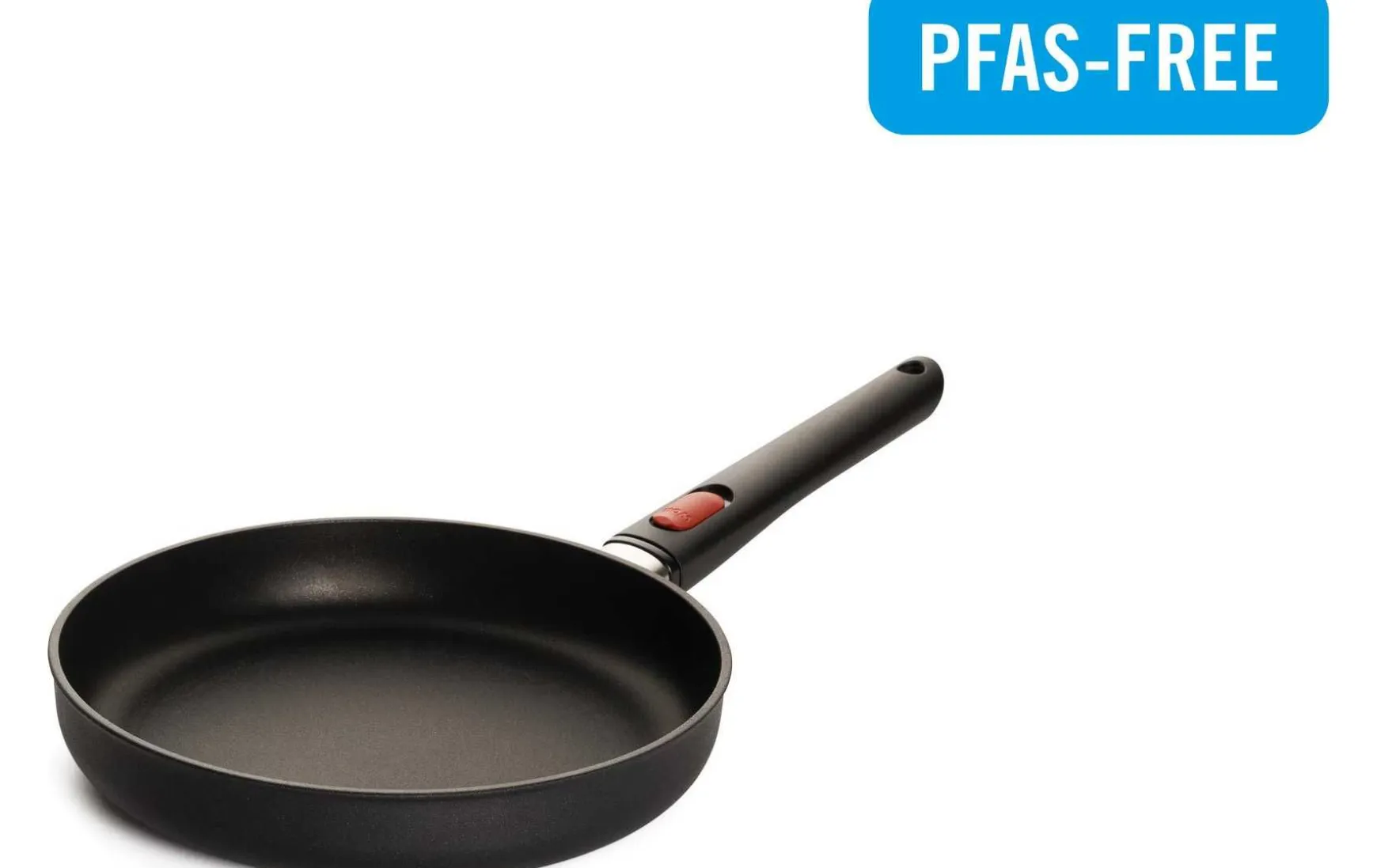 Mit 100% recyceltem Aluminium, neuer Versiegelung ohne PFAS, robust und langlebig. Und der rauen Oberfläche, an der nichts haften bleibt:
