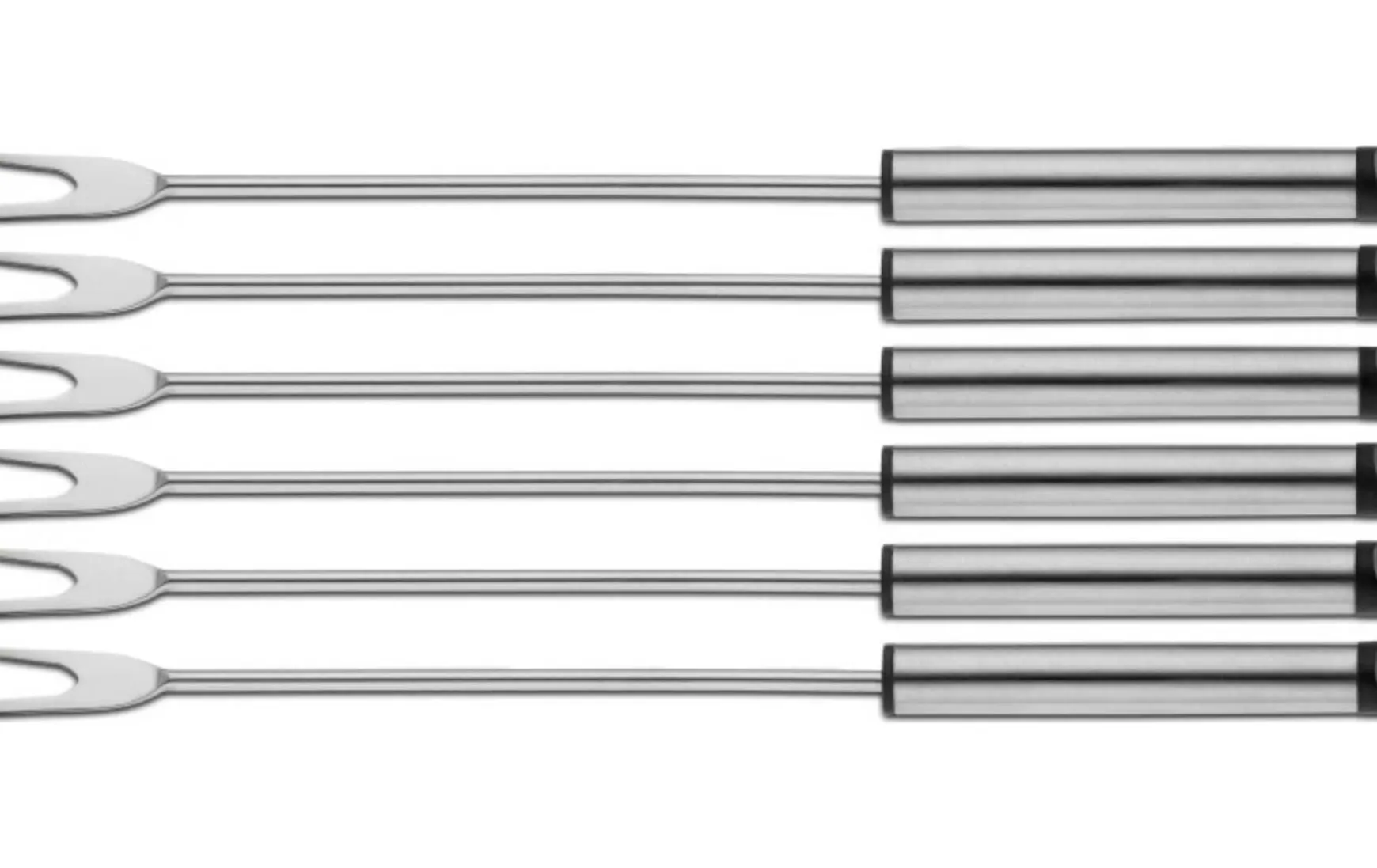 Beim Fondue ist es wichtig, die eigene Gabel im Blick zu haben. Deshalb auch die Anfangsfrage eines jeden Fondueabends: Wer möchte welche Gabel? Diese Fonduegabeln sind mit Punkten versehen, angeordnet wie bei einem Würfel. Diese fühlbaren Punkte, aufsteigend von einem bis zu 6 Punkten am Griffende ermöglichen eine einfache Unterscheidung der Gabeln.