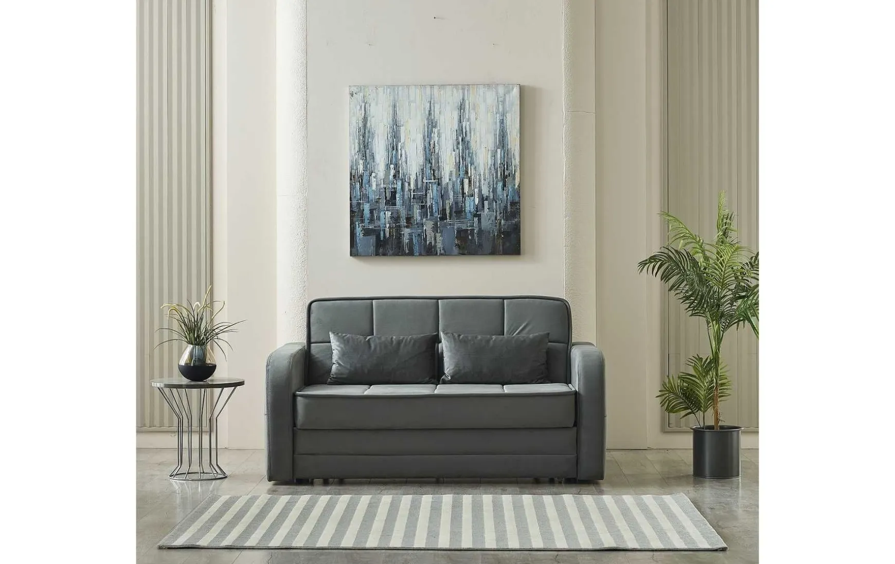 Dieses praktische Funktionssofa in zeitlosem Grau überzeugt durch Komfort und vielseitige Einsatzmöglichkeiten. Ausgestattet mit einer integrierten Schlaffunktion bietet es eine großzügige Liegefläche von ca. 145 × 194 cm und eignet sich ideal für Gäste oder den täglichen Gebrauch. Der rundum echt bezogene Rücken ermöglicht eine freie Platzierung im Raum, während zwei Zierkissen zusätzlichen Komfort bieten. Mit einer Sitzhöhe von ca. 48 cm, einer Sitztiefe von ca. 66 cm und hochwertiger HR-Schaum-Polsterung sorgt das Sofa für angenehmes Sitzen und Liegen.