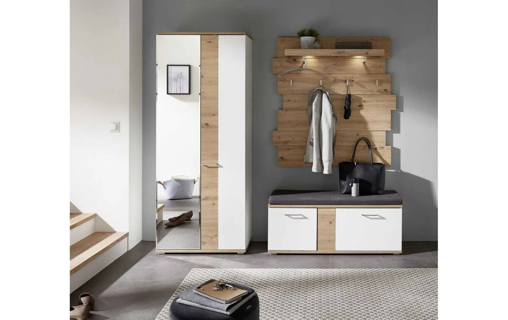 Durch die Artisan-Eiche-Nachbildung strahlt diese Wandgarderobe moderne Eleganz und warmen, gemütlichen Charme aus.