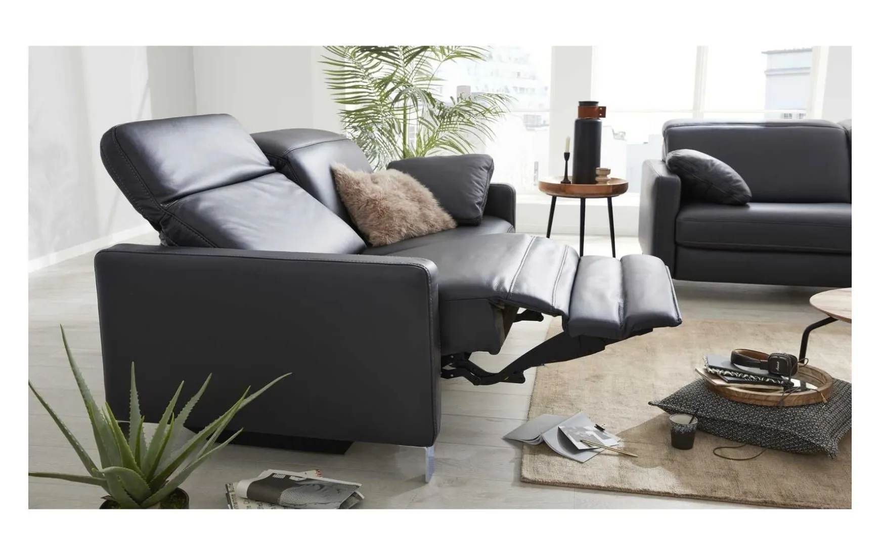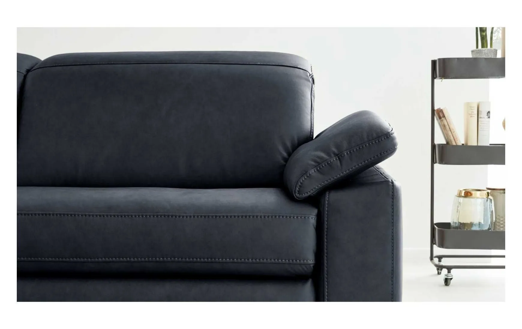 - Gegen Mehrpreis erhältlich: Vorziehbank motorisch, Rücken echt bezogen, 2.5er Sofa, motorische Relaxfunktion, Armlehnkissen