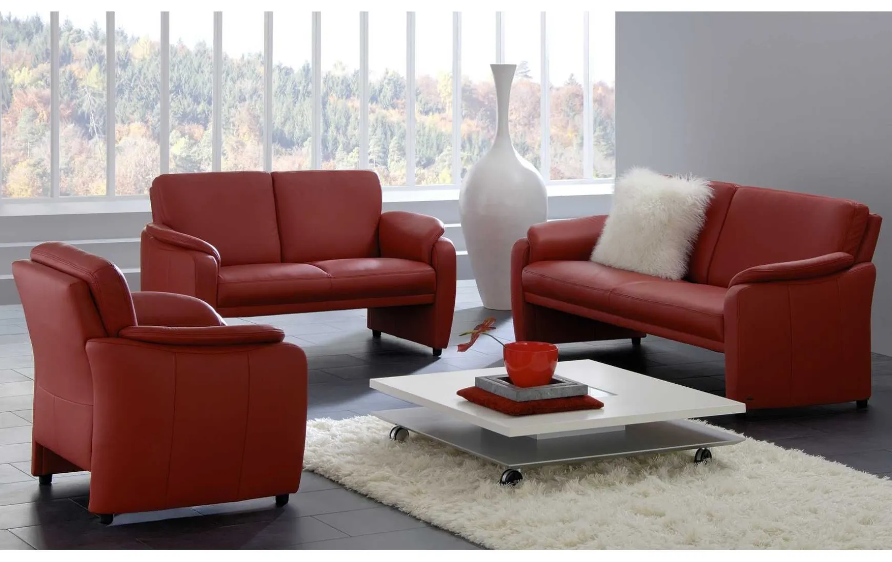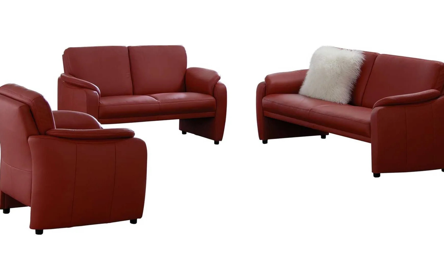 - Gegen Mehrpreis erhältlich: Rücken echt bezogen, 2er Sofa, Sessel, Hocker, Alufluss, Relaxfunktion