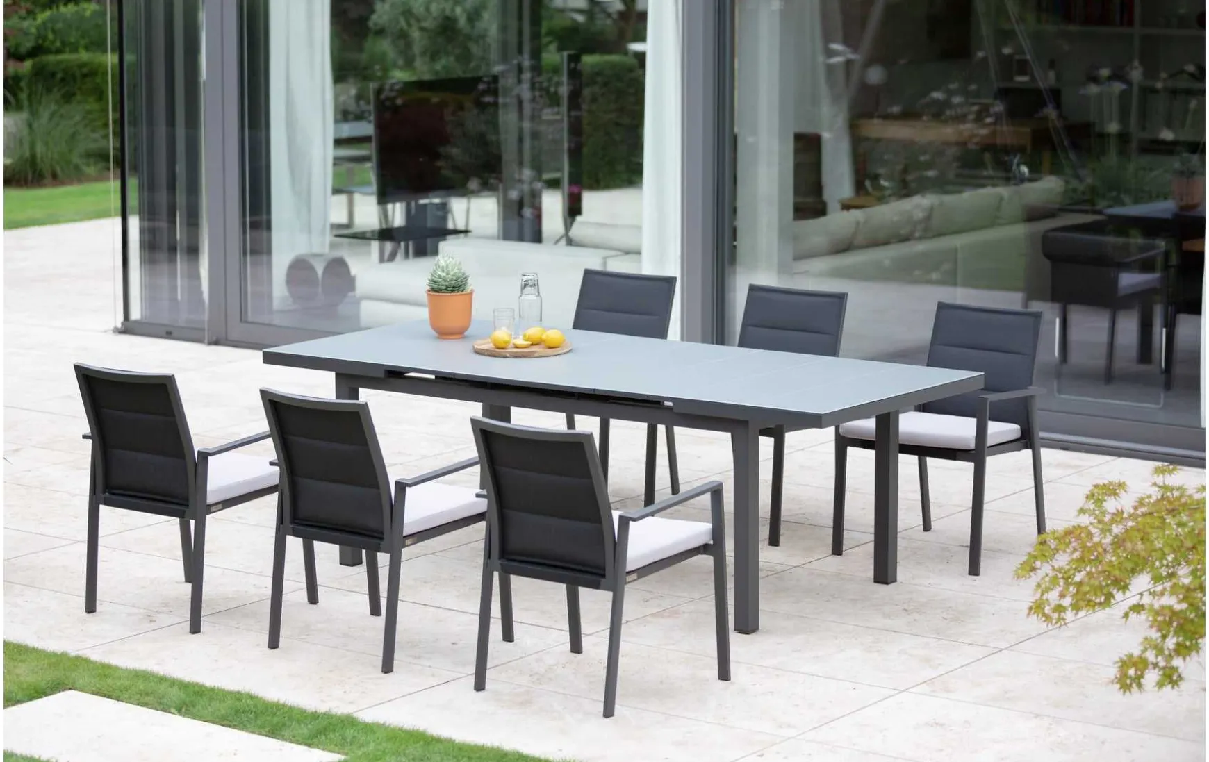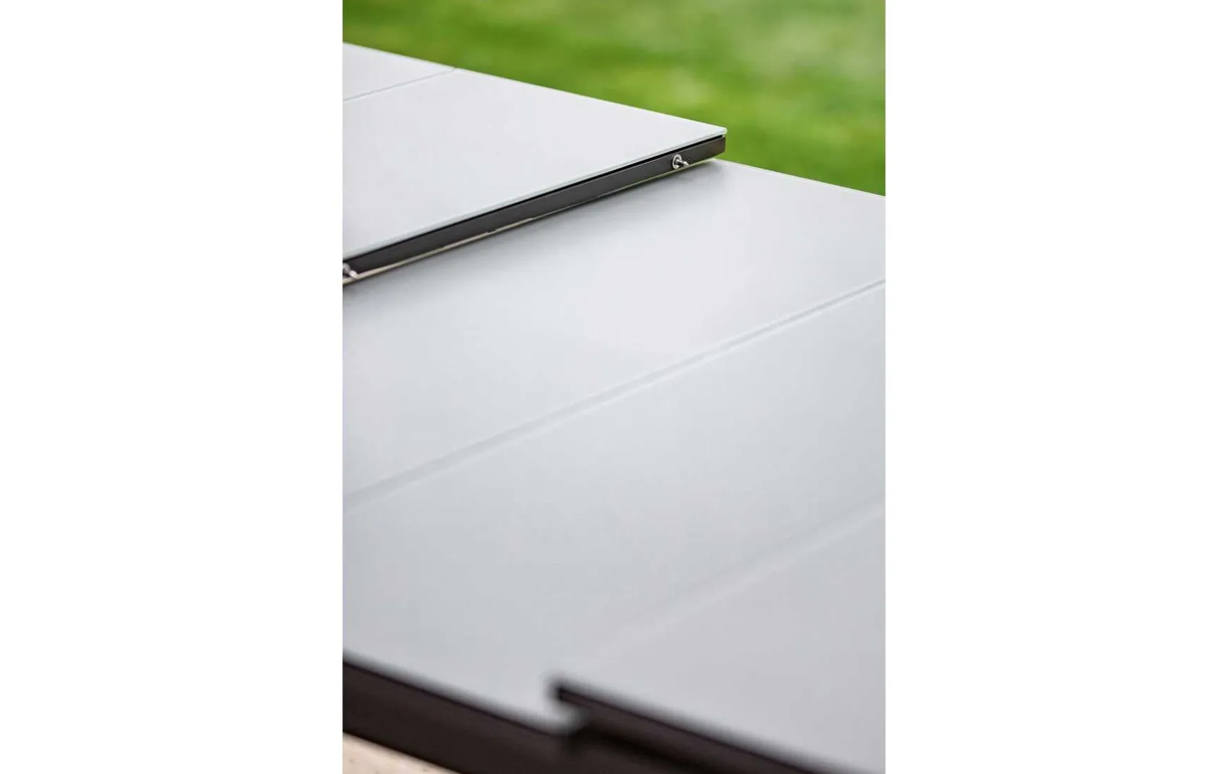 Sehr gut verarbeitete Materialien machen diesen Tisch zu einem hochwertigen Highlight in Ihrem Garten. Pulverbeschichtetes Aluminium wurde hier in Anthrazit gehalten. Sie haben spontan mehr Besuch erhalten? Kein Problem! Mit einem Handgriff lässt sich der Tisch von 180 auf 240 cm ausziehen, dank seiner tollen und einfachen Mechanik.