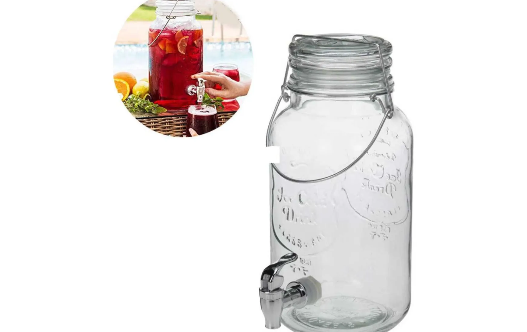 Dieser Getränkespender kann zum Servieren von Kaltgetränken verwendet werden: Limonade, Eistee, Saft oder hausgemachte Liköre. Er erleichtert den Flüssigkeitsfluss, ohne dass der Behälter angehoben oder gekippt werden muss. Sein Fassungsvermögen beträgt: 4L