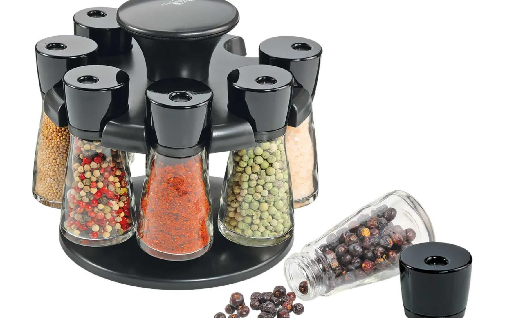 - Bestehend aus: 1x Drehständer, 8x Gewürzgläser unbefüllt