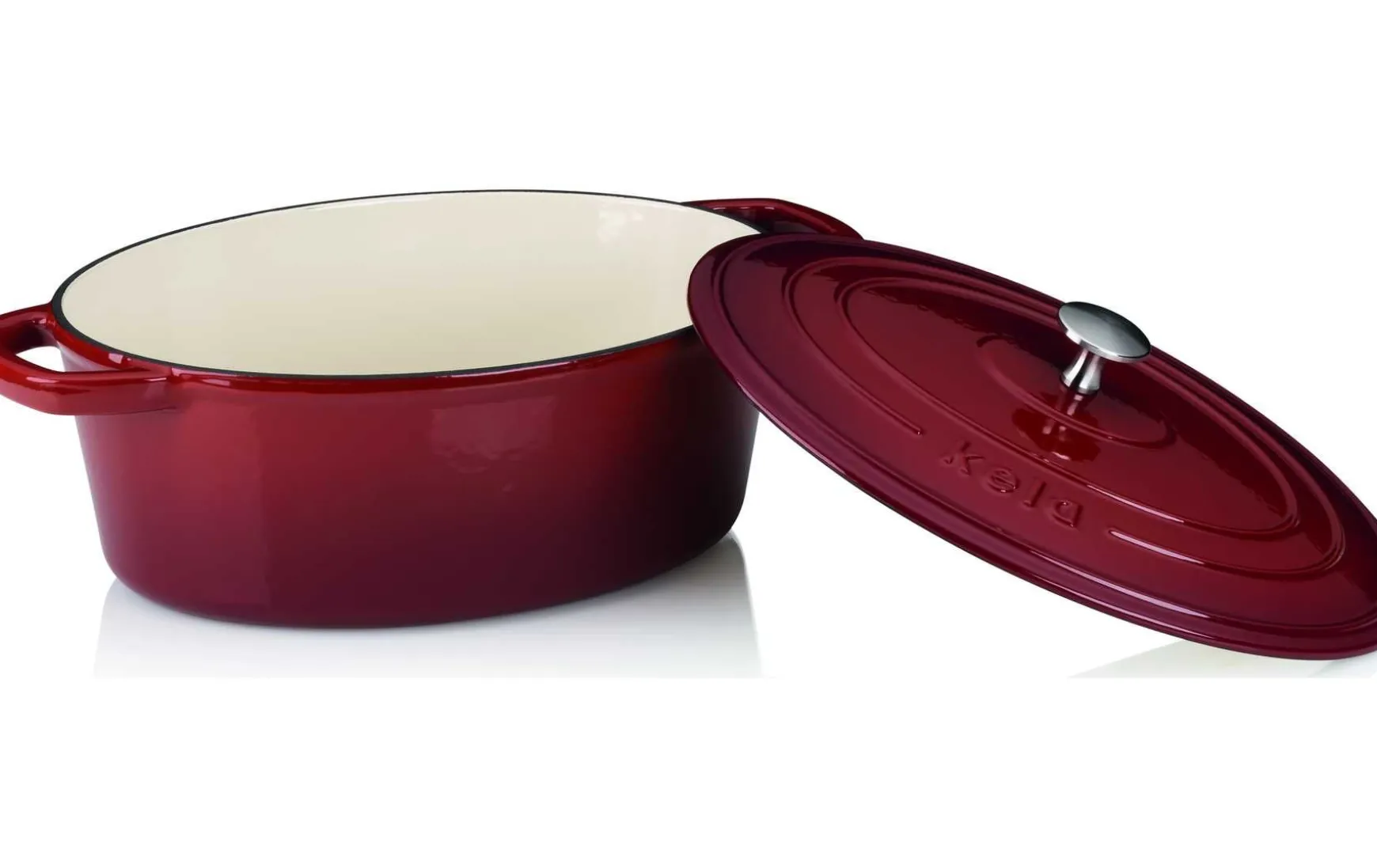 Der ovale Bräter: Er zeichnet sich aus durch eine Emaille-Beschichtung innen und einen emaillierten Rotverlauf außen.