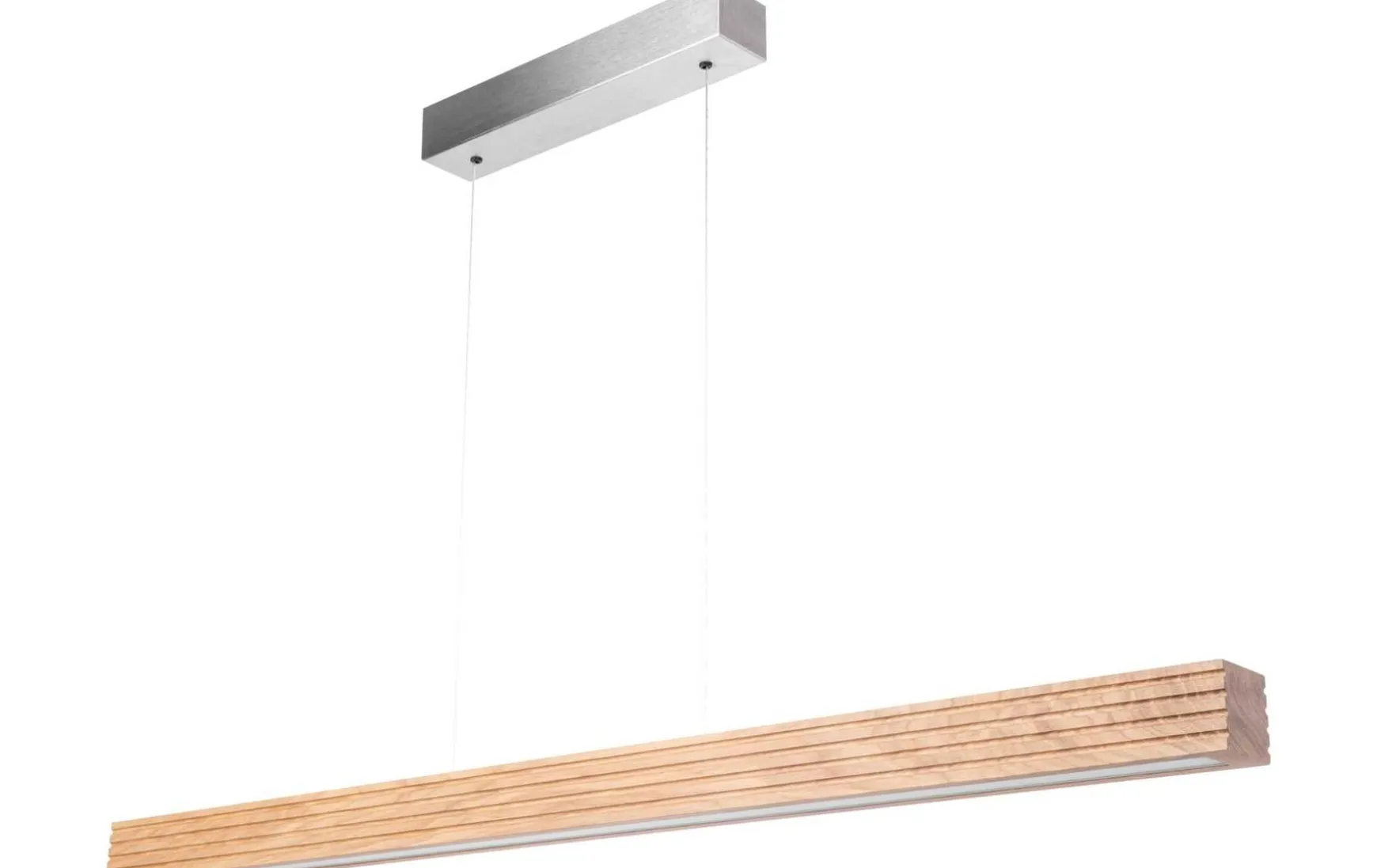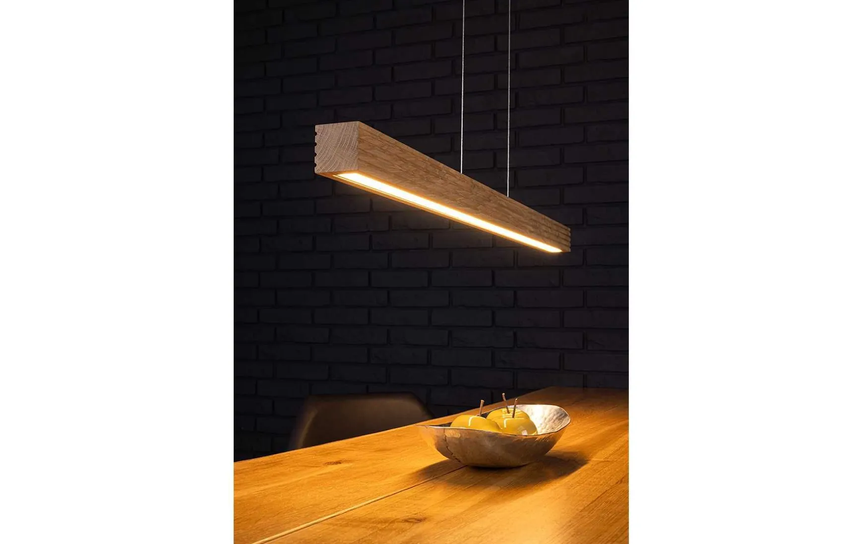 Die Leuchte ist aus europäischem Eichenholz geformt und mit einem Tastdimmer an der Leuchte ausgestattet.
