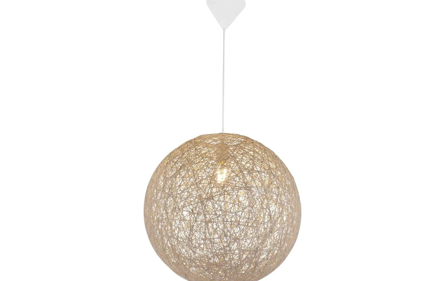 Diese Hängelampe besticht durch ihre schöne kugelförmige Optik. Auf der weißen Kunststoffbasis häng eine beige Kugel aus Papiergeflecht, mit einem Durchmesser von 44 cm. In der Kugel befindet sich eine E27 Fassung (max. 40W), welche mit einem Leuchtmittel Ihrer Wahl ausgestattet werden kann. Wir empfehlen LED-Leuchtmittel aufgrund ihrer Langlebigkeit und Stromersparnis.