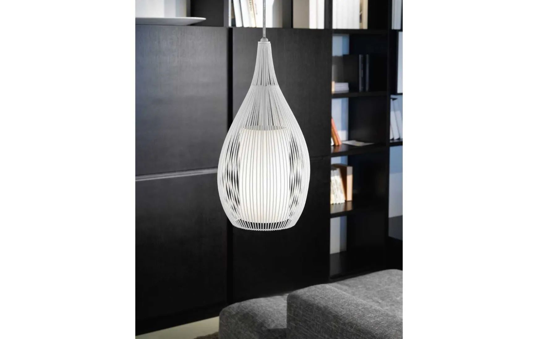 Die Pendelleuchte ist aus einem organisch-geformten, weißem Draht-Schirm gefertigt, der mit einem innenliegenden weißen Glas-Zylinder kombiniert wurde. Durch den 19 cm großen Lampenschirm entstehen faszinierende Licht- und Schattenspiele, sobald die Leuchte eingeschaltet ist. Die Hängelampe im Monochrom-Design eignet sich hervorragend für moderne und skandinavische Einrichtungsstile und bietet eine wohnliche Beleuchtung im Wohnzimmer oder im Esszimmer über dem Esstisch. Das Leuchtmittel ist nicht im Lieferumfang enthalten. Geeignet ist die Leuchte für jedes Leuchtmittel mit E27-Sockel.