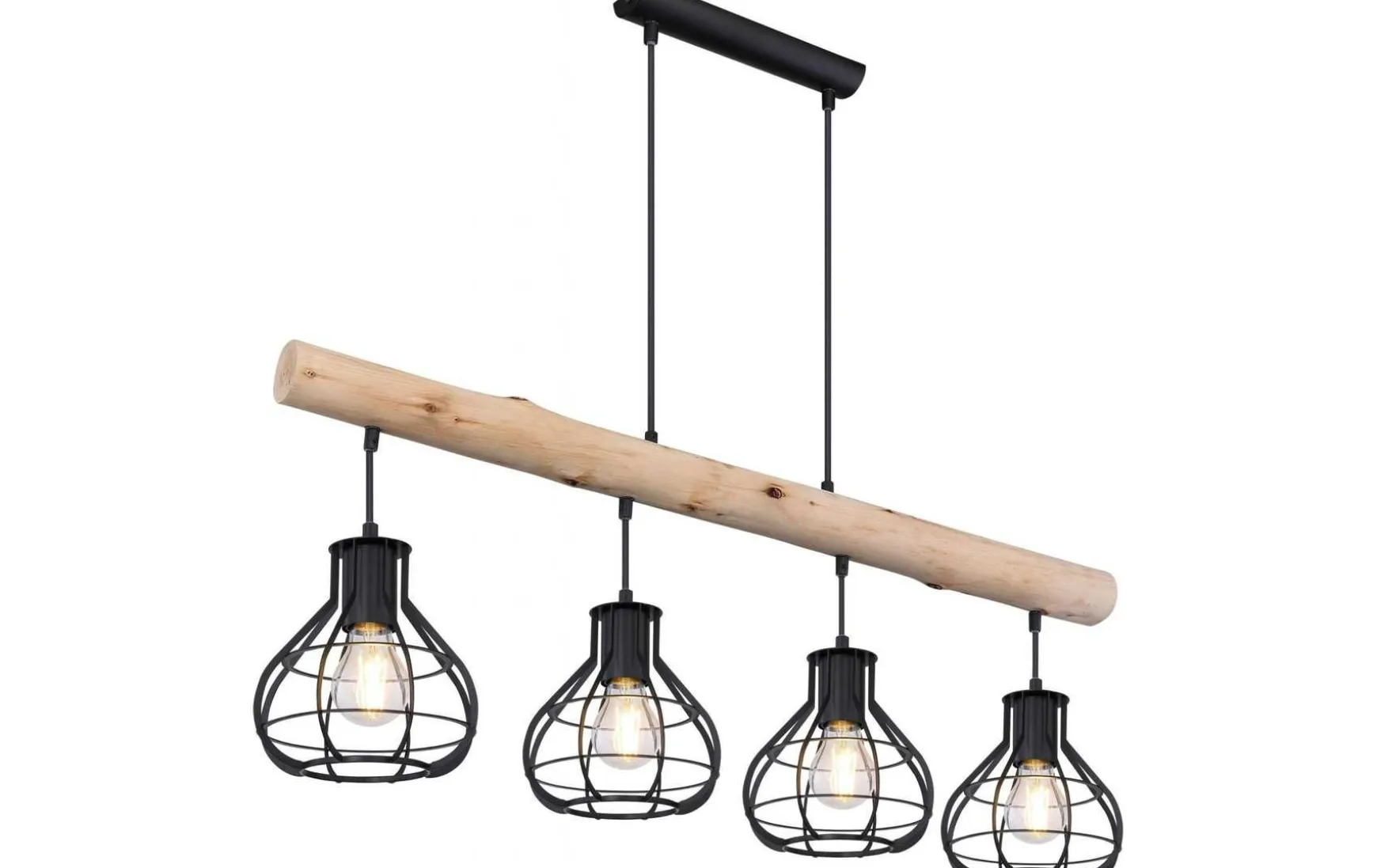 Hängeleuchte Metall schwarz matt, Holz natur, exkl. 4xE27 60W 230V