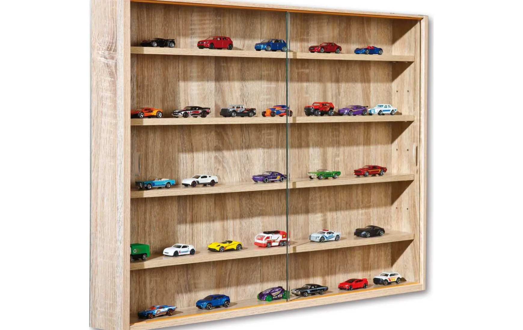 Die Hängevitrine in Holzfarben ist die ideale Lösung, um Sammlerstücke stilvoll und staubgeschützt zu präsentieren. Mit ihren kompakten Maßen von ca. 80 × 60 × 9,5 cm (B/H/T) eignet sie sich perfekt für die Wandmontage und spart dabei wertvollen Platz. Hinter der Front lassen sich Modellautos, Figuren oder andere Sammlerstücke übersichtlich und dekorativ präsentieren. Vier verstellbare Einlegeböden ermöglichen eine flexible Aufteilung des Innenraums, sodass unterschiedliche Größen problemlos untergebracht werden können. Das schlichte weiße Design sorgt dafür, dass die ausgestellten Stücke im Mittelpunkt stehen.