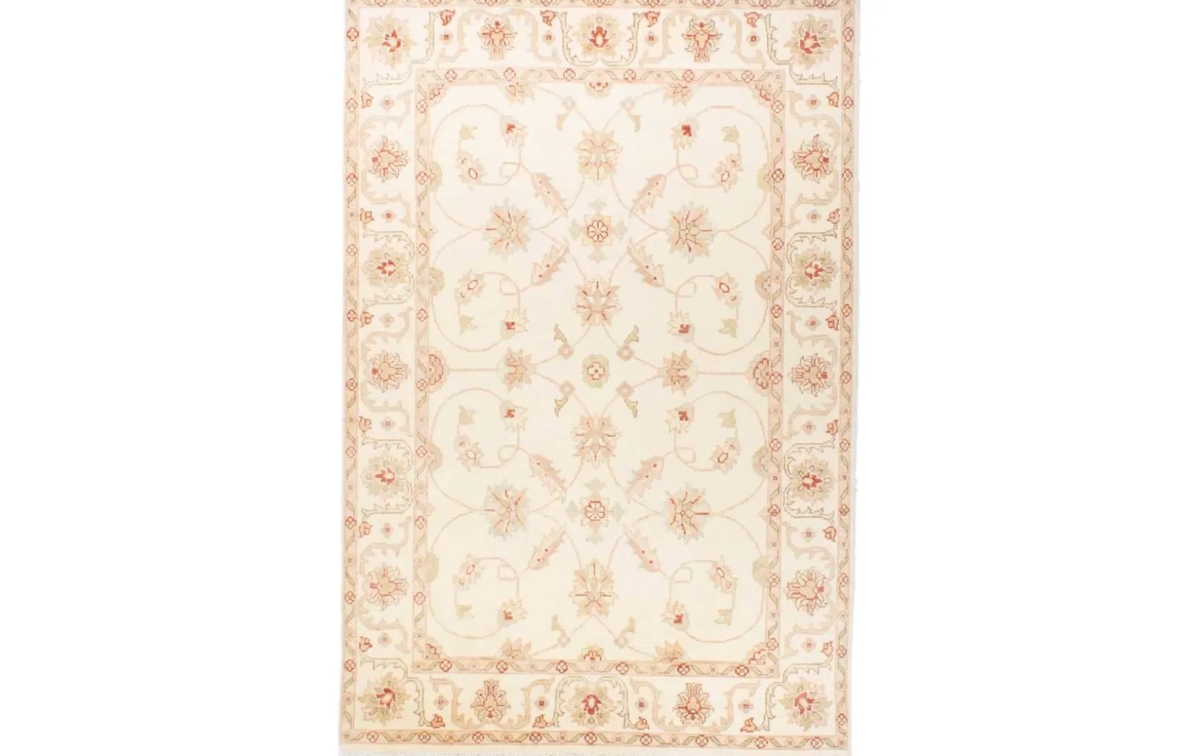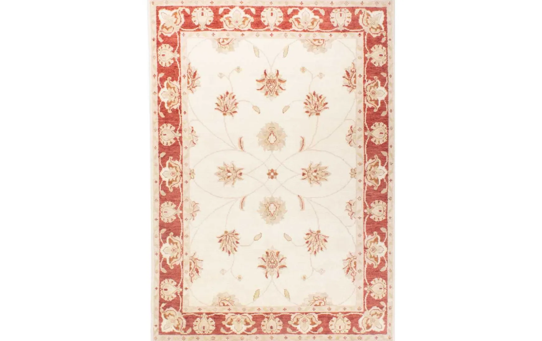Perfekt für Liebhaber ist dieser handgemachter Teppich mit floraler Ornamentik im Ziegler- Stil. Geknüpft in Indien mit Flor aus 100% Schurwolle, versprüht er Wärme in jedem Wohnraum.