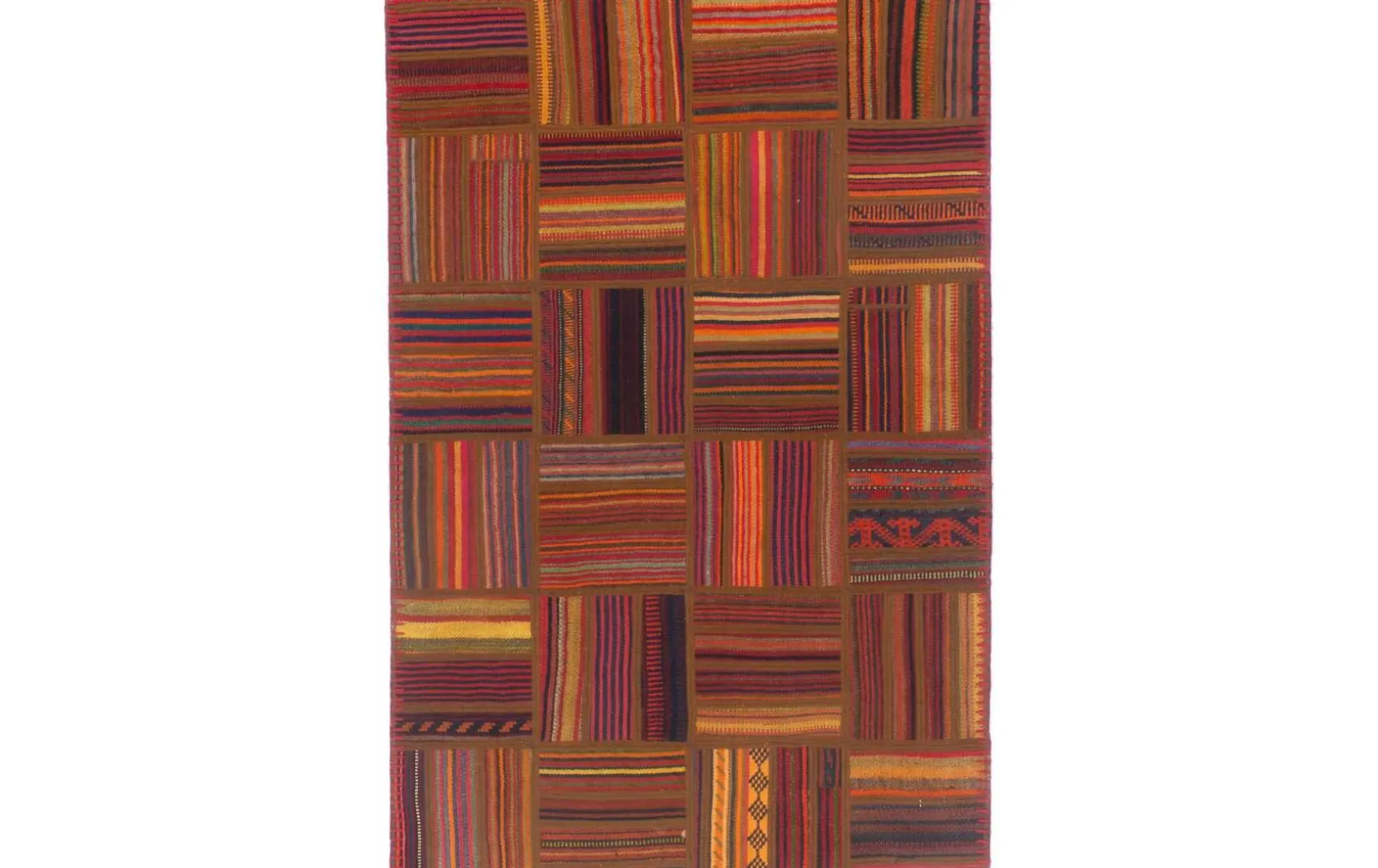 Eine Bereicherung für jeden Wohnraum ist dieser handgewebte Patchwork-Teppich aus Iran mit strapazierfähigem Flor aus 100% Schurwolle.