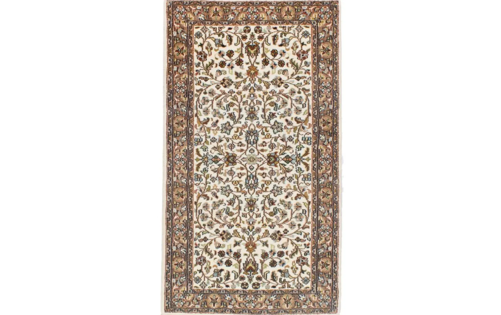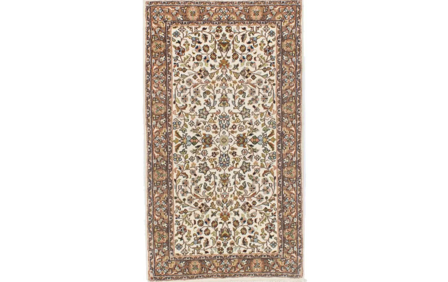 Dieser handgeknüpfte Teppich aus Indien begeistert mit legendärem Keshan Design. Der Flor aus 100% Schurwolle ist zudem sehr strapazierfähig.