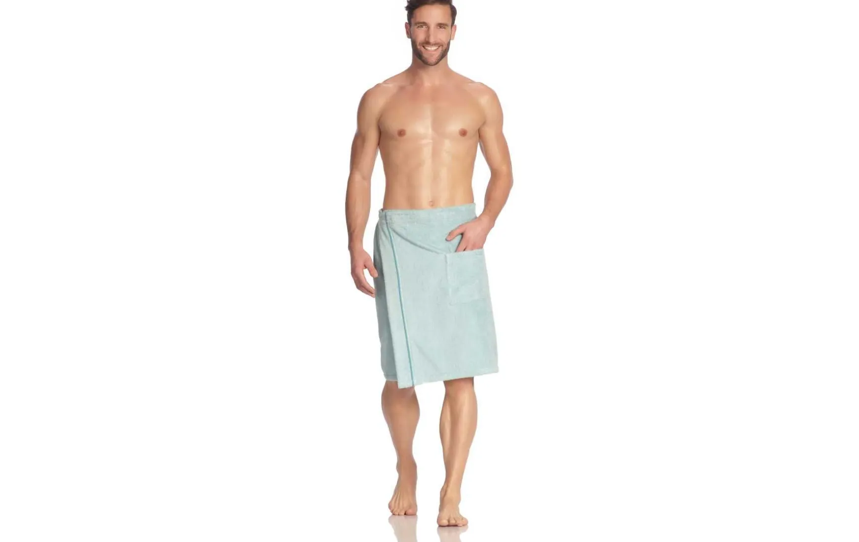 Dieser neue Herrensaunakilt aus dem Hause Vossen ist durch die individuelle Weitenregulierung des Klettverschlusses, die praktische Tasche und die extrem hohe Saugfähigkeit der ideale Sauna-Begleiter.