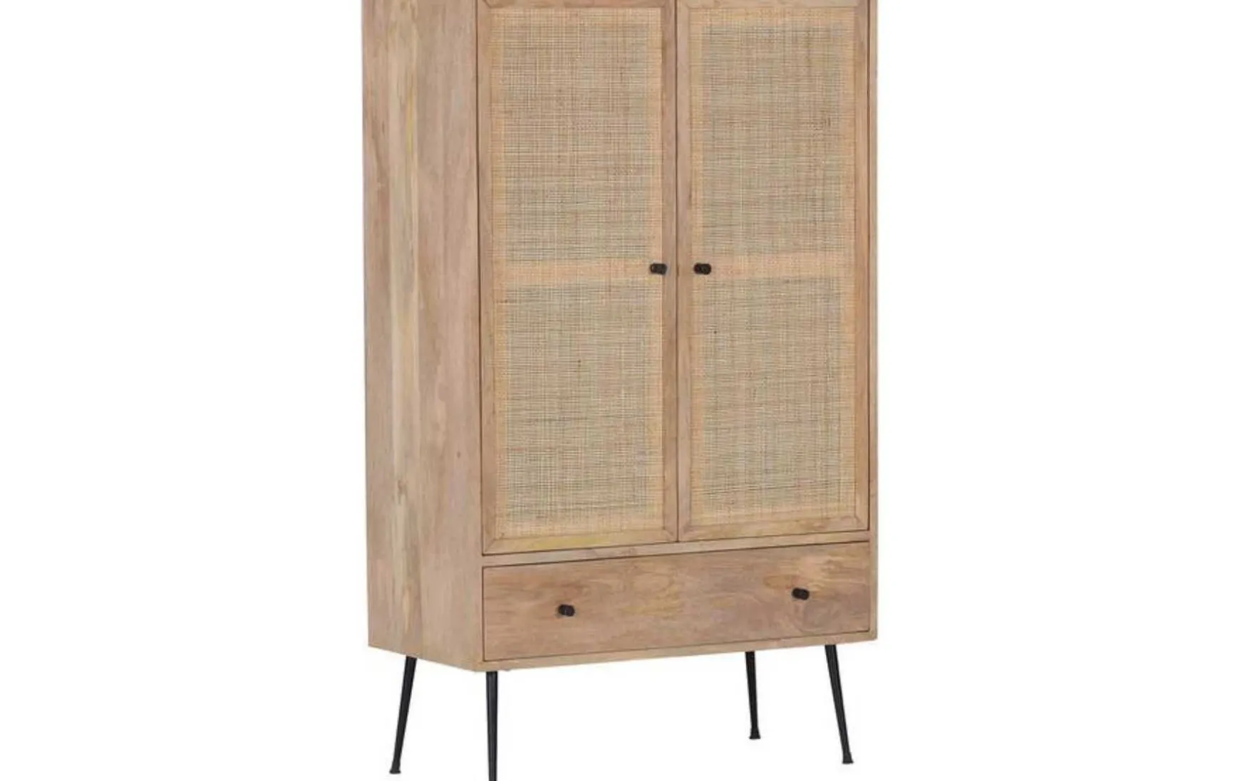 Dieses Highboard aus massivem Mangoholz in Naturoptik verbindet natürliche Wärme mit modernem Design. Die markante Holzmaserung macht jedes Möbelstück zu einem Unikat, während die schwarzen Füße einen stilvollen Kontrast setzen und für einen stabilen Stand sorgen. Mit seinen kompakten Maßen bietet das Highboard praktischen Stauraum und eignet sich ideal für Wohn-, Ess- oder Arbeitsbereiche.