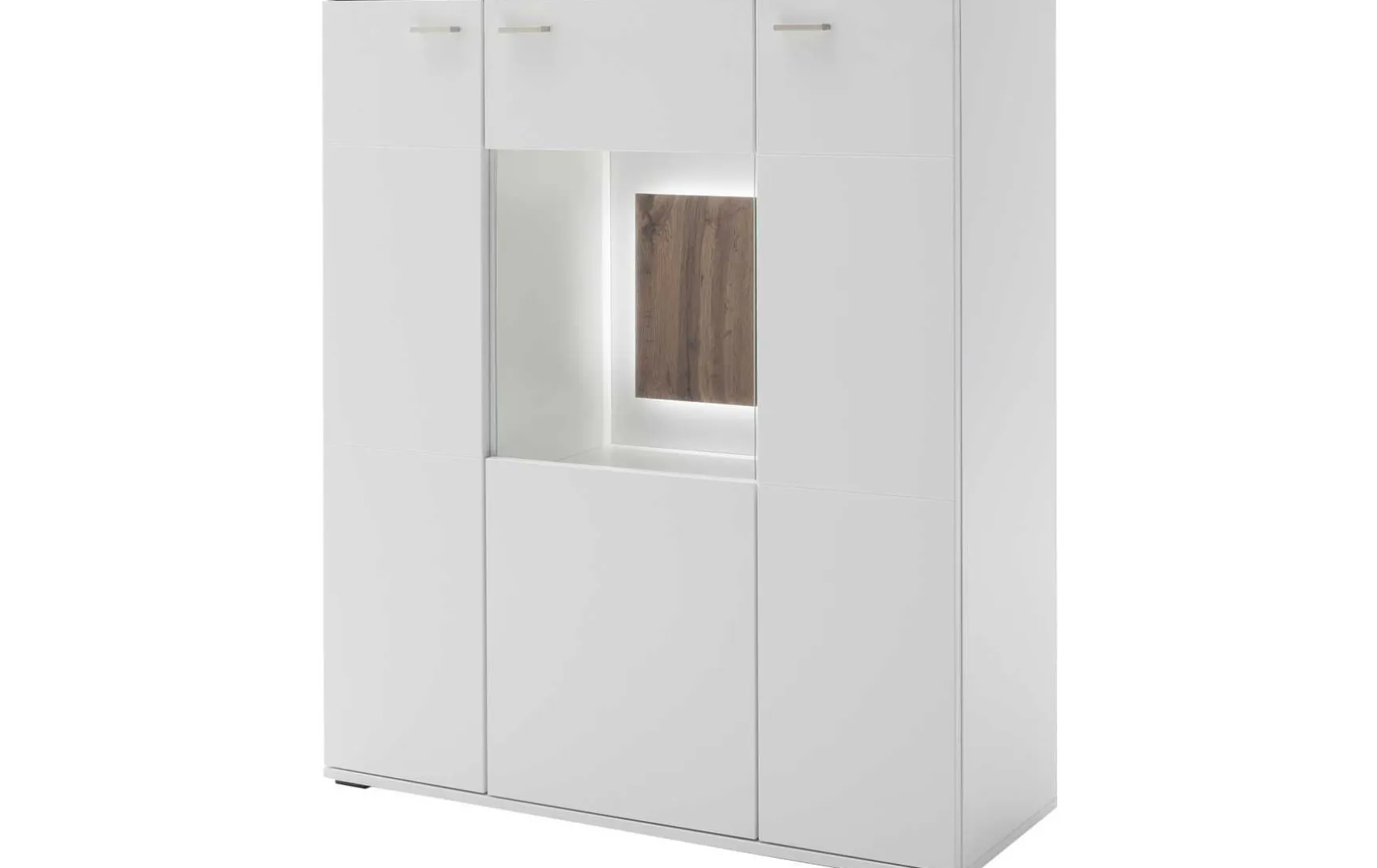 - Modernes Highboard in Weiß matt mit Wildeiche-Dekor