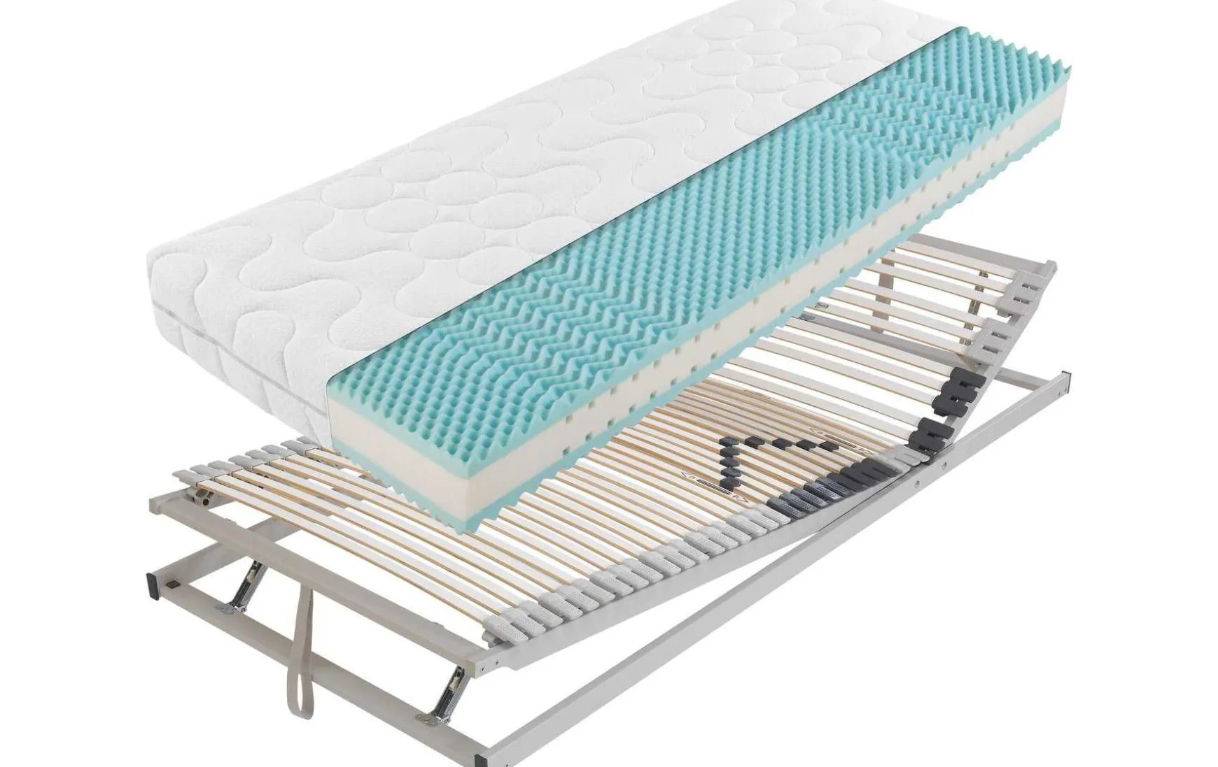 - Nicht im Preis enthalten: Lattenrost, Nackenkissen