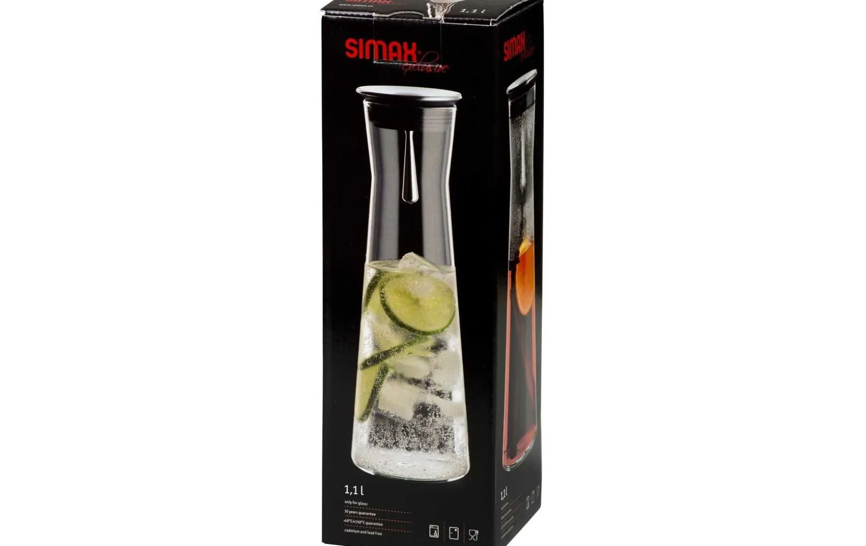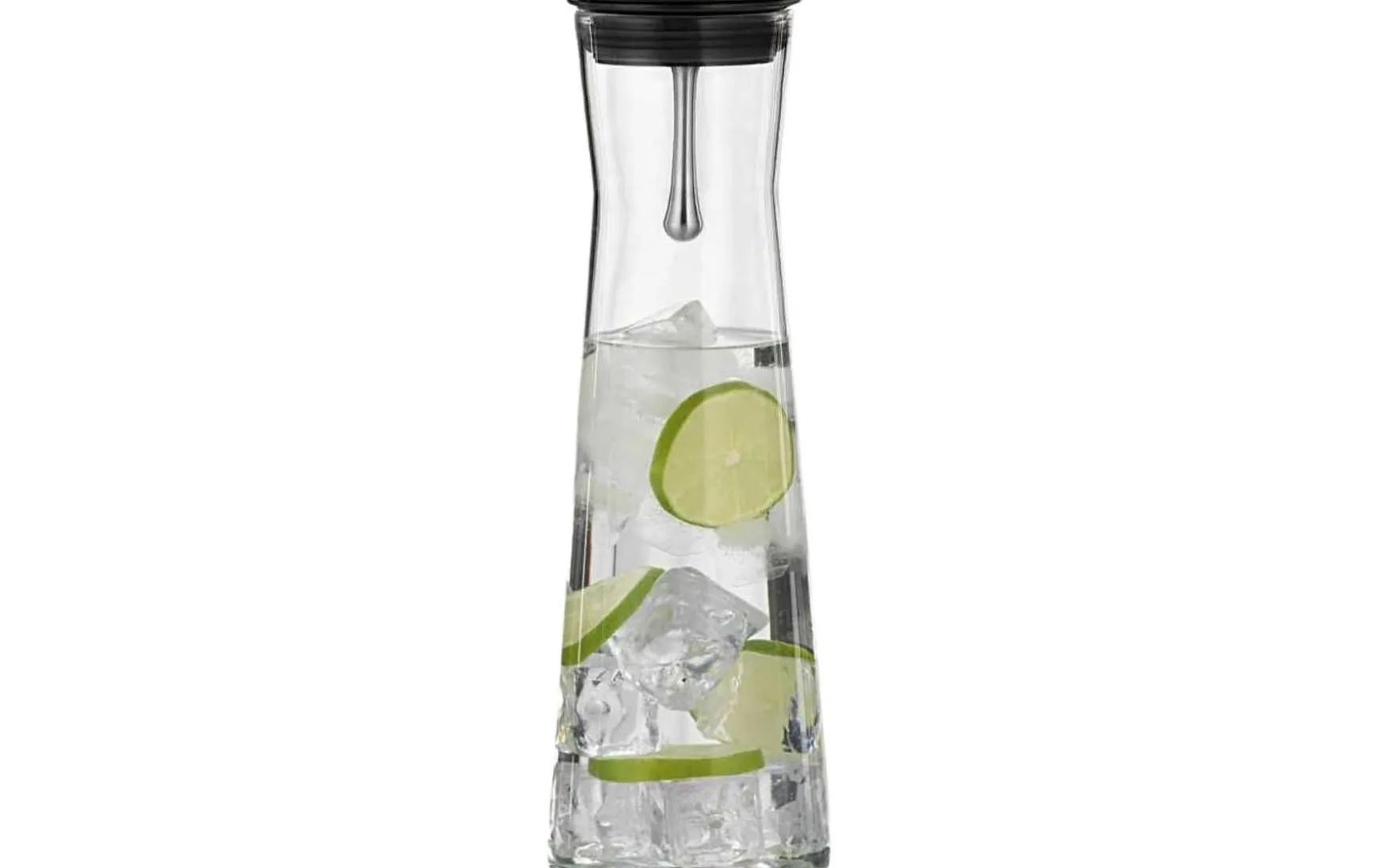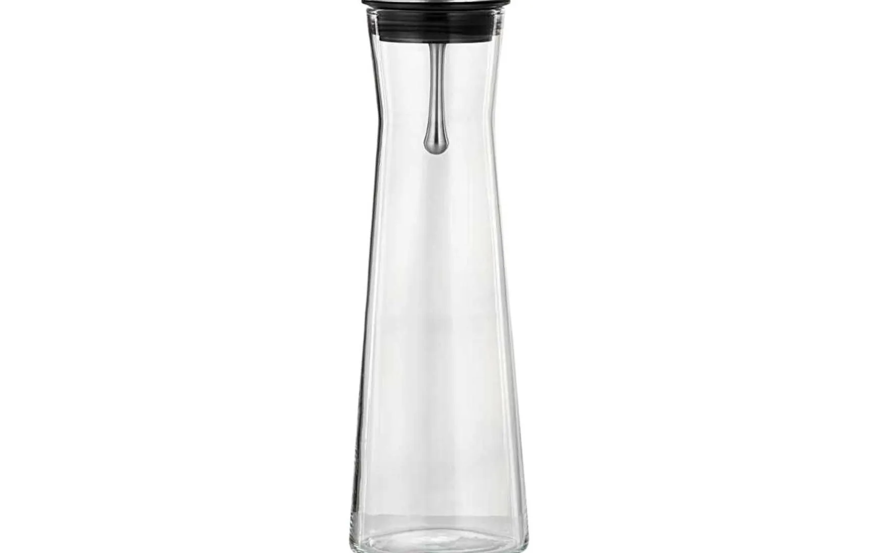 Die formschöne Karaffe aus hitzebeständigem Glas. Deckel mit Ausgießfunktion aus Edelstahl, daher ist mit dieser Karaffe ein tropffreies Ausgießen möglich. Schützt das Getränk vor Verunreinigung und gleichzeitig bleiben z.B. Eiswürfel und Zitronenscheiben beim Ausgießen in der Karaffe. Selbstverständlich ist sie auch spülmaschinengeeignet.