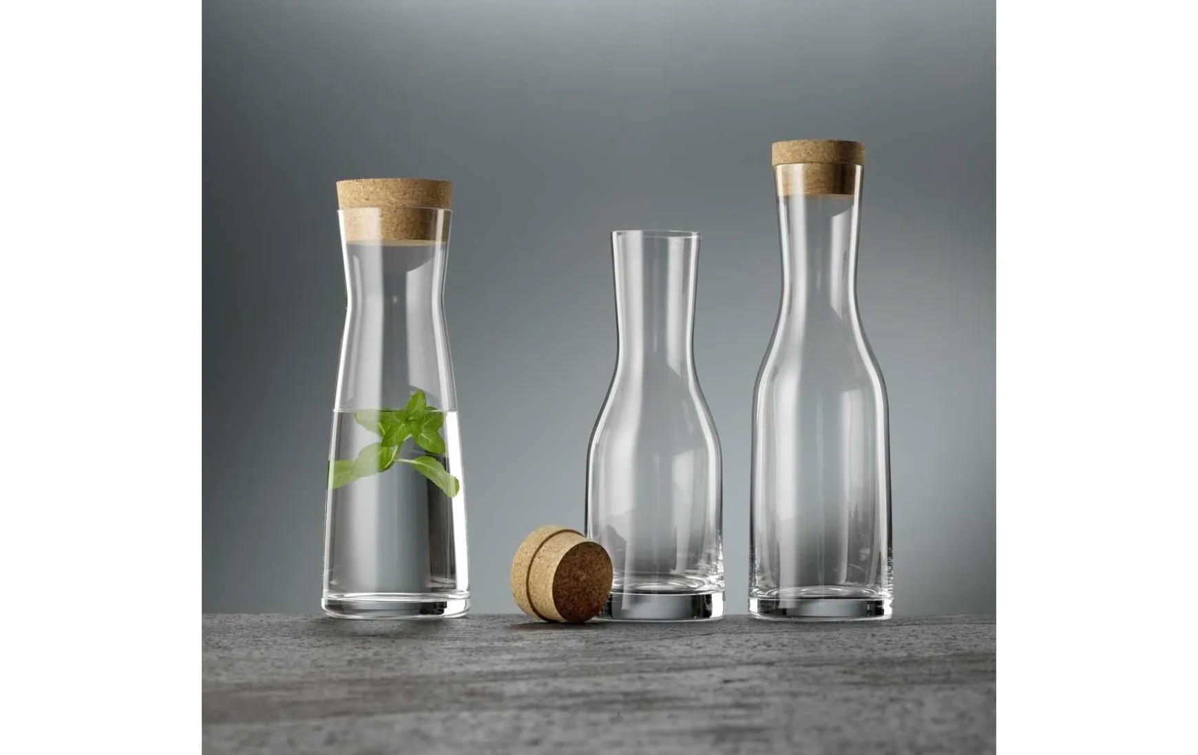 - Glaskaraffe aus Klarglas mit Korkverschluss