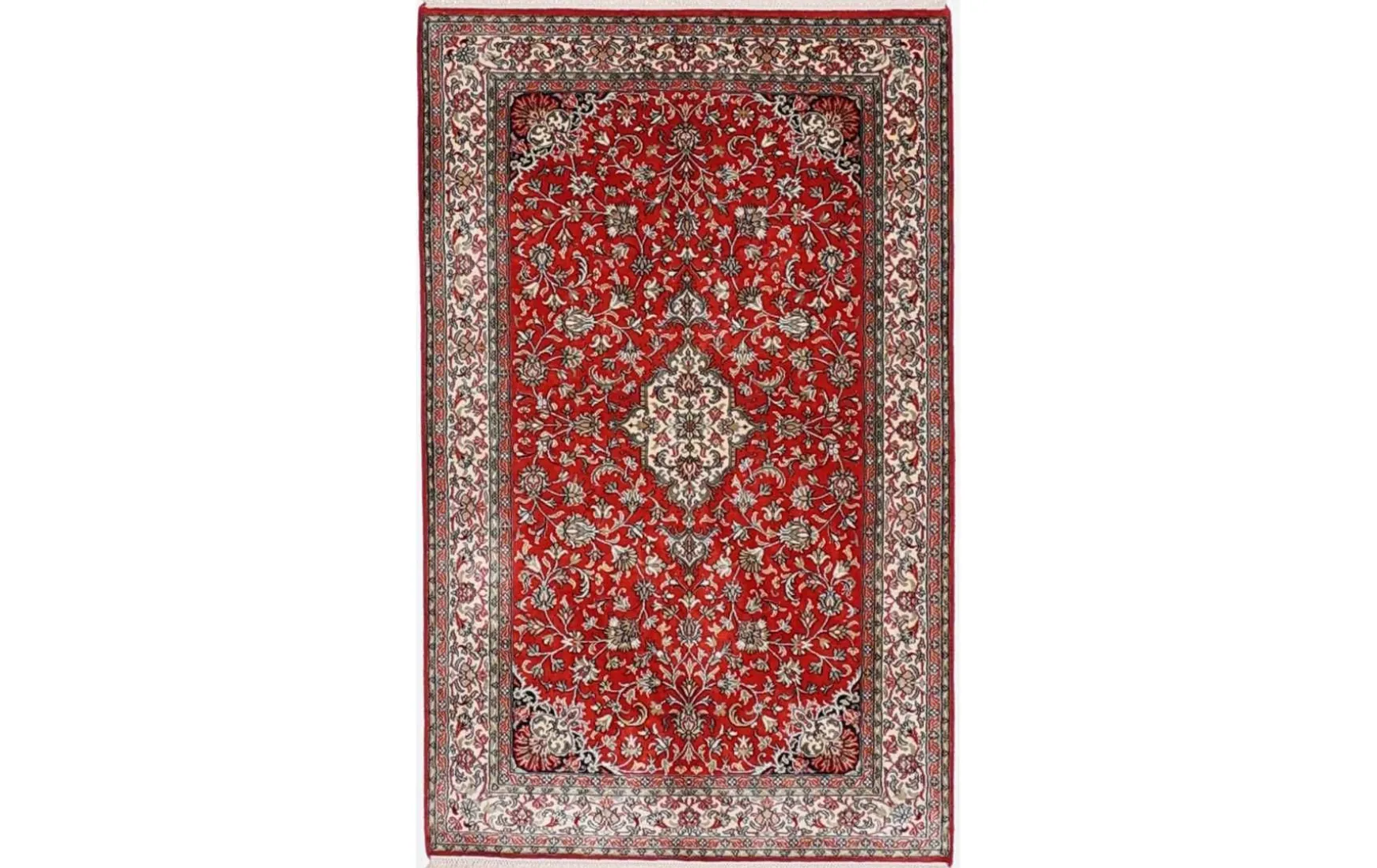 Kashmir Teppiche aus reiner Naturseide gehören zu den edelsten Erzeugnissen orientalischer Knüpfkunst. Ihre außergewöhnliche Feinheit ermöglicht detailreiche Muster, die mit filigraner Präzision gearbeitet sind. Dieses Meisterwerk zeigt ein extrem fein gearbeitetes Medaillon, das den Teppich zu einem kunstvollen Bild voller Eleganz macht. Die Seide verleiht dem Flor einen einzigartigen Glanz, eine samtige Haptik und eine intensive Farbbrillanz, die den Teppich je nach Lichteinfall immer wieder neu erstrahlen lässt.