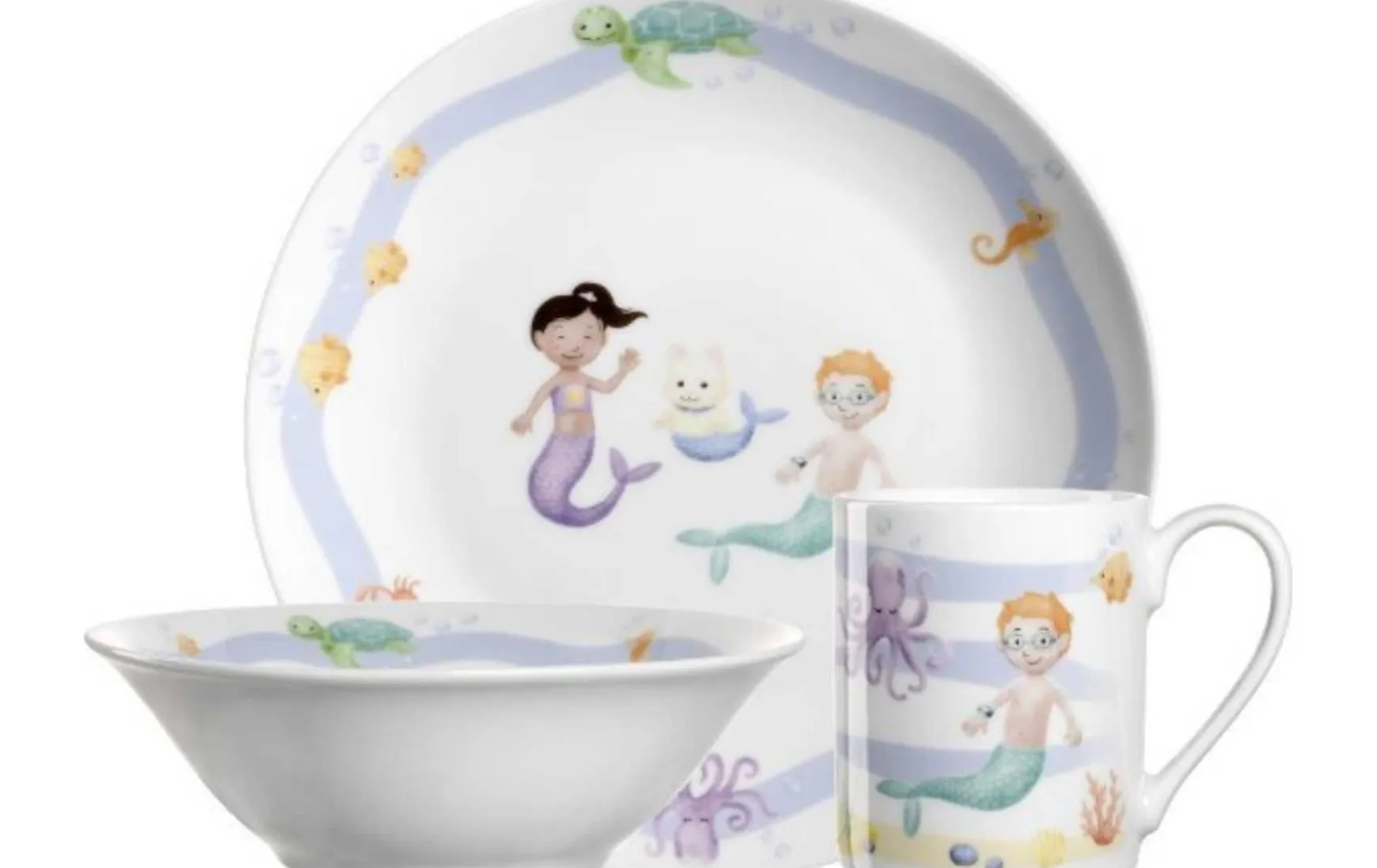 Gestalten Sie Ihren Esstisch ganz nach Ihrem Geschmack: mit dem Kindergeschirrset „Meer“ setzen Sie schöne Akzente und überzeugen mit Charme. Dieses harmonisch geformte Küchenset ist ein absolutes Must-Have. Ein schöner Aufdruck ziert den Artikel. Dieses Küchenset aus Porzellan wird zum ganz besonderen Highlight. Belohnen Sie sich mit schönen Dingen in Ihrem Alltag – mit Leonardo.