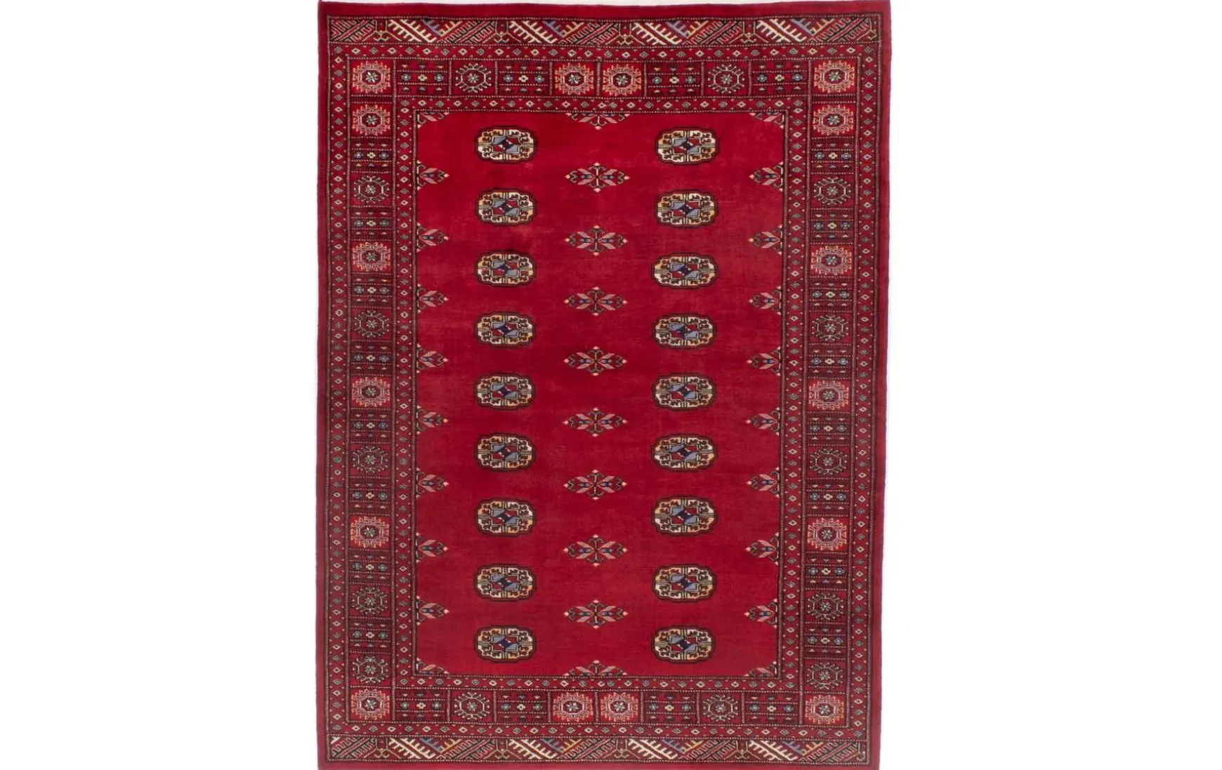 Hier präsentiert sich ein handgeknüpfter Teppich aus Pakistan im Turkman-Design mit glanzreichem Flor aus 100% Schurwolle. Ein Unikat für Ihr Daheim.
