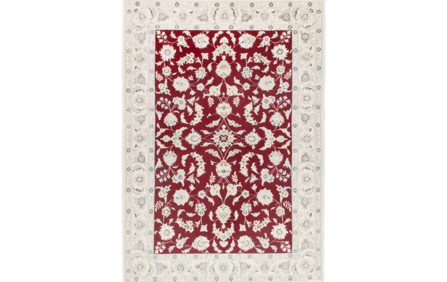 Dieser handgeknüpfte Teppich aus dem Iran begeistert mit seinem sehr elegantem Floral-Muster. Der Flor wurde aus 100% Hochlandwolle gefertigt.