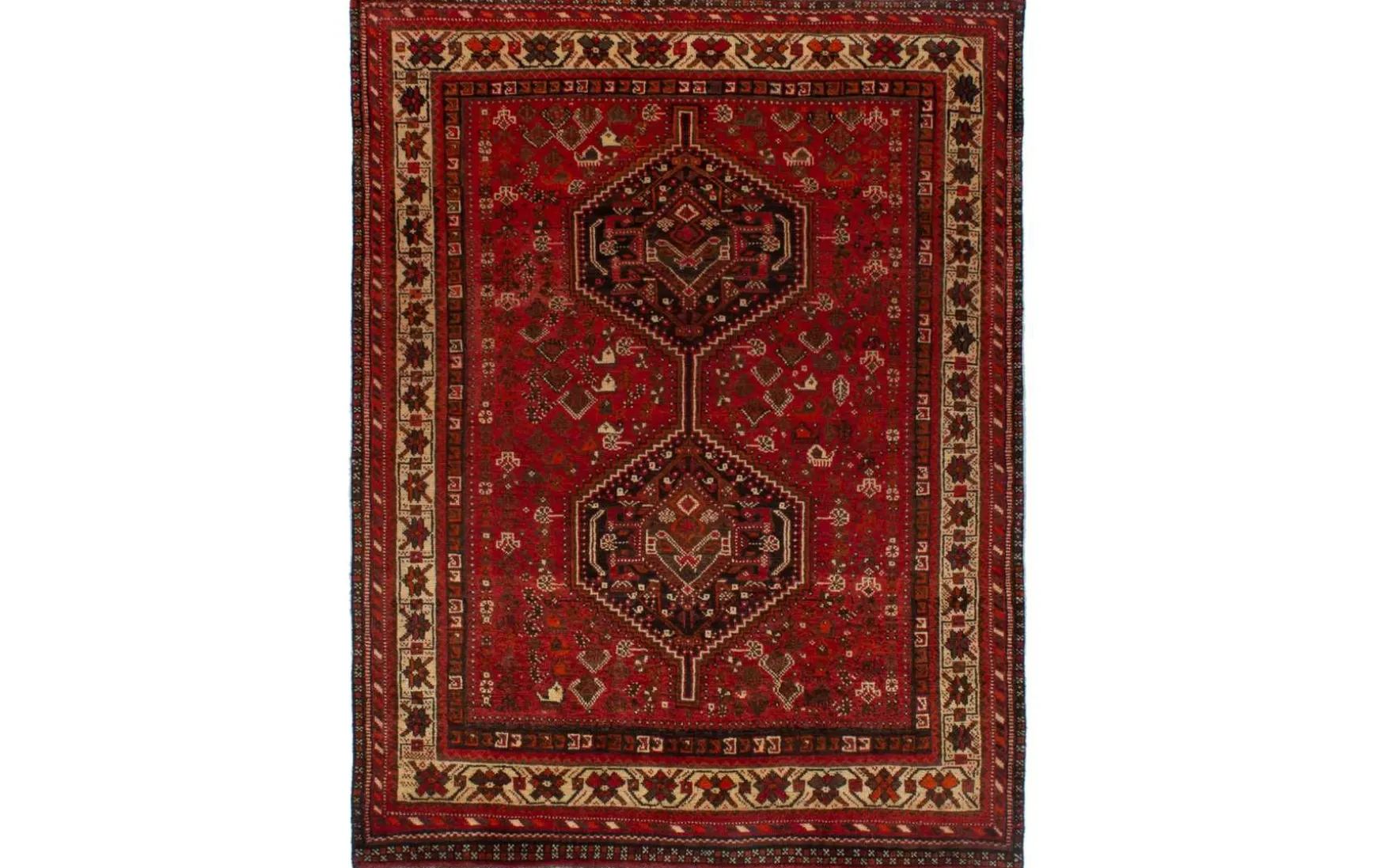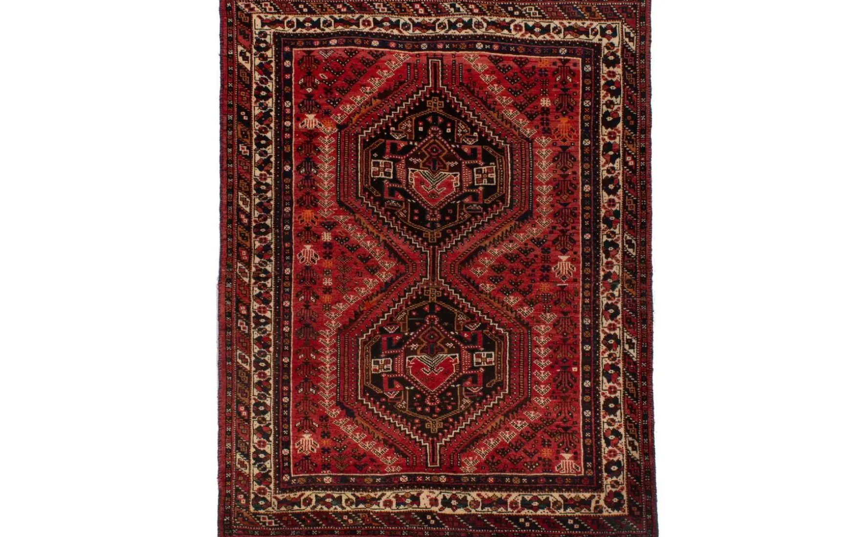Handgeknüpfter Teppich aus dem persischen Nomadengebiet mit geometrischem Muster. Ein muss für jeden Orientliebhaber. Der Flor und die Kette wurden aus 100% Schurwolle verarbeitet.