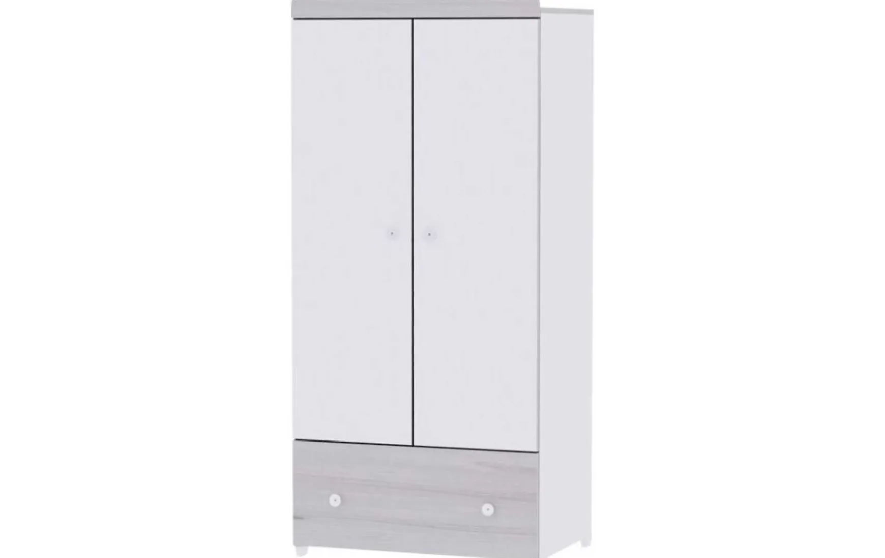 Dieser Kleiderschrank fürs Babyzimmer überzeugt durch klassische Eleganz, hochwertige Materialien und geprüfte Sicherheit nach europäischen Standards. Gefertigt aus stabiler 18 mm Melaminspanplatte bietet der Schrank eine langlebige und pflegeleichte Qualität. Die Kombination aus Light-Oak-Optik und weißen Absetzungen sorgt für eine freundliche, zeitlose Ausstrahlung. Mit zwei Türen, einer Schublade, zwei verstellbaren Einlegeböden und einer Kleiderstange bietet der Drehtürenschrank ausreichend Stauraum für Baby- und Kinderkleidung. Ideal kombinierbar mit passender Kommode oder einem Bett mit Umbaumöglichkeit.