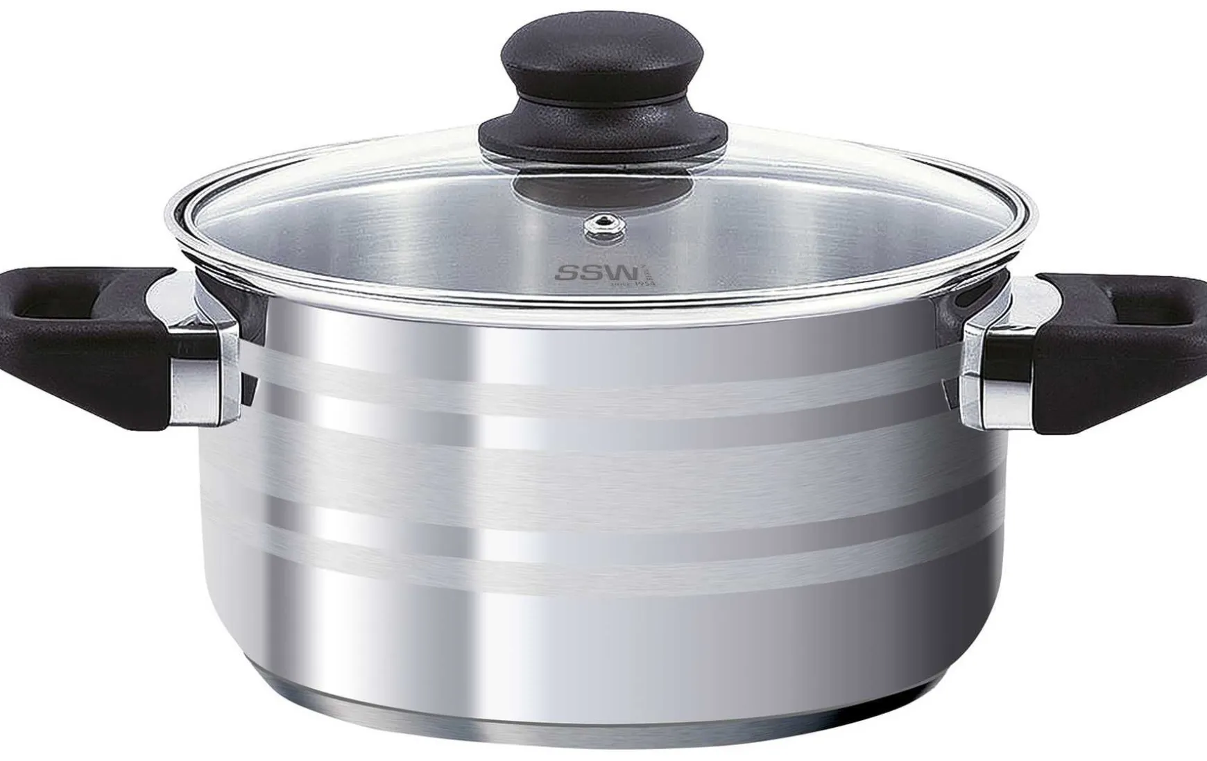 Dieser Kochtopf mit Glasdeckel zum Sichtkochen zeigt sich außen poliert und seidenmatten Streifen. Die schwarzen Kunststoffgriffe mit Edelstahl-Flammenschutz erleichtern das Hantieren am Herd. Dieser formschöne Topf ist perfekt für energiesparen