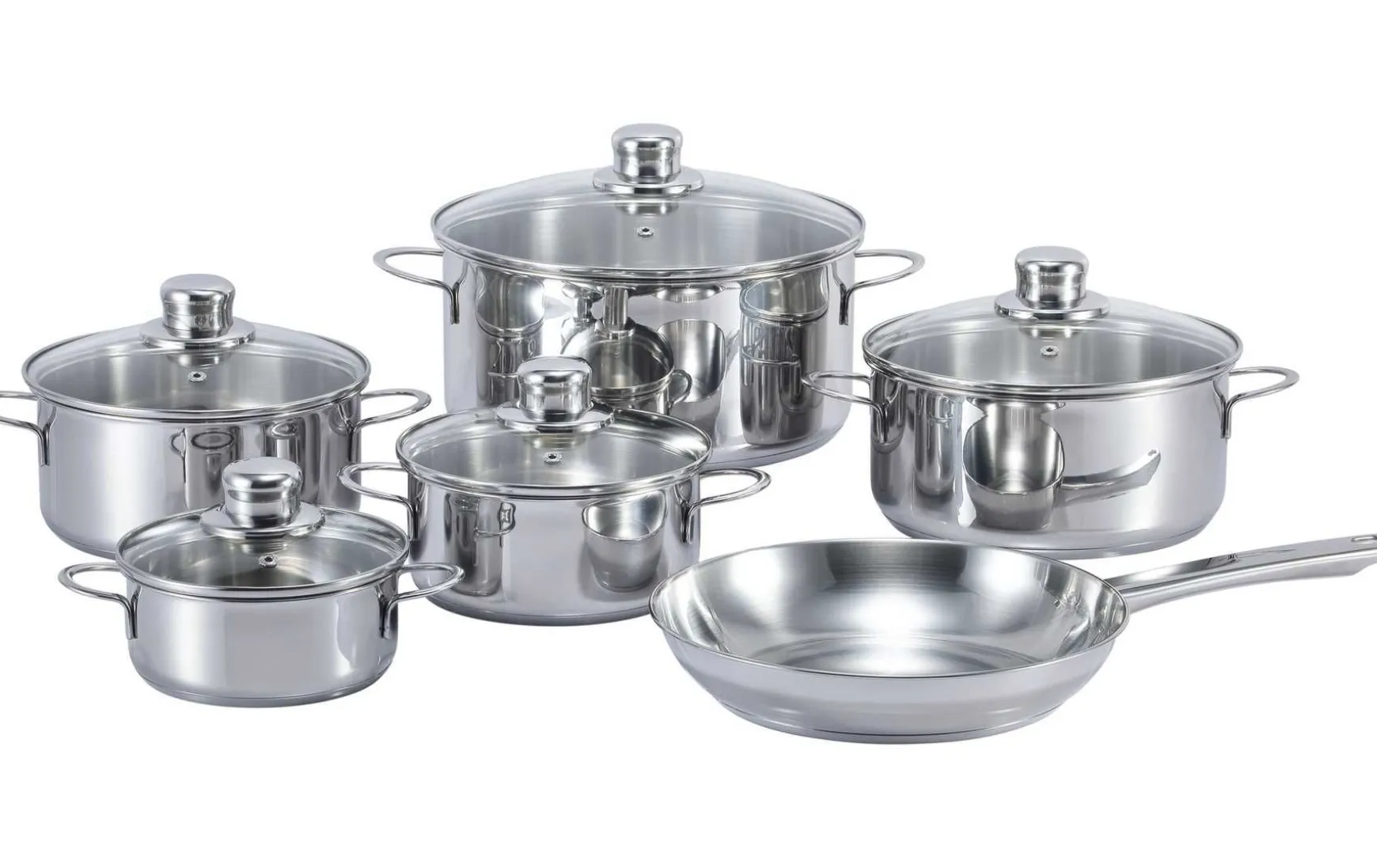 Dieses 11-tlg. Kochtopfset überzeugt durch außen und innen poliert mit Edelstahlgriffe, dem gerolltem Rand, Glasdeckel inklusive Dampfloch, dem Thermo Sandwichboden für die schnelle Aufnahme und Speicherung der Wärme.