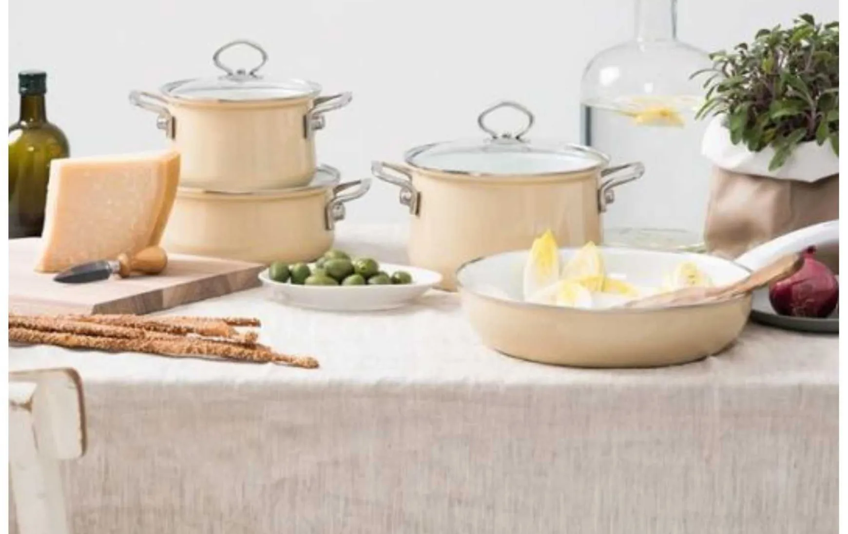 Die Linie wird komplettiert durch die Pfanne sowie den Schnabeltopf im selben Farbton.
