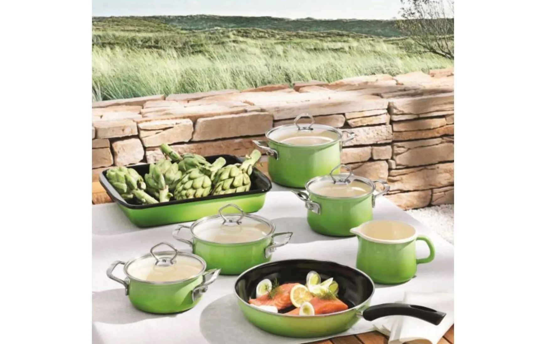 Die Linie wird komplettiert durch die Pfanne sowie den Schnabeltopf im selben Farbton.