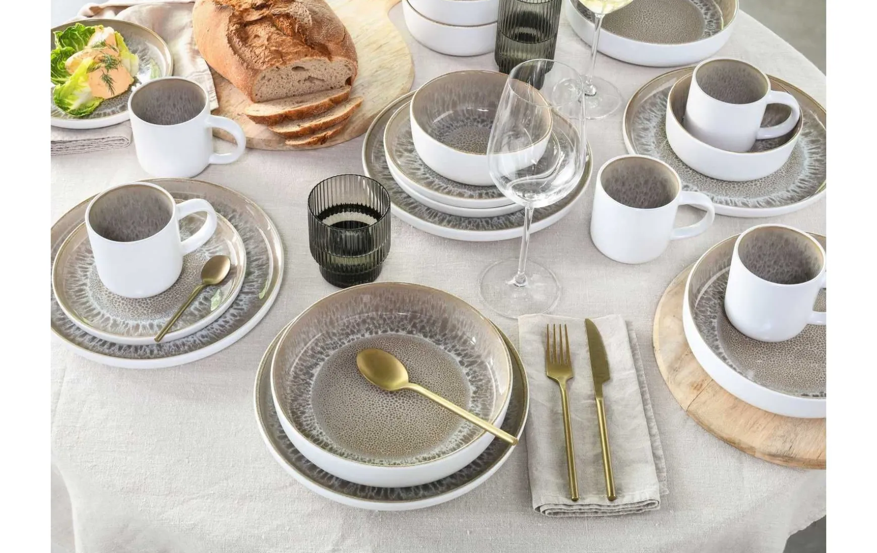 - Artikelinhalt: 4x Speiseteller, 4x Frühstücksteller, 4x Müslischalen, 4x Kaffeebecher