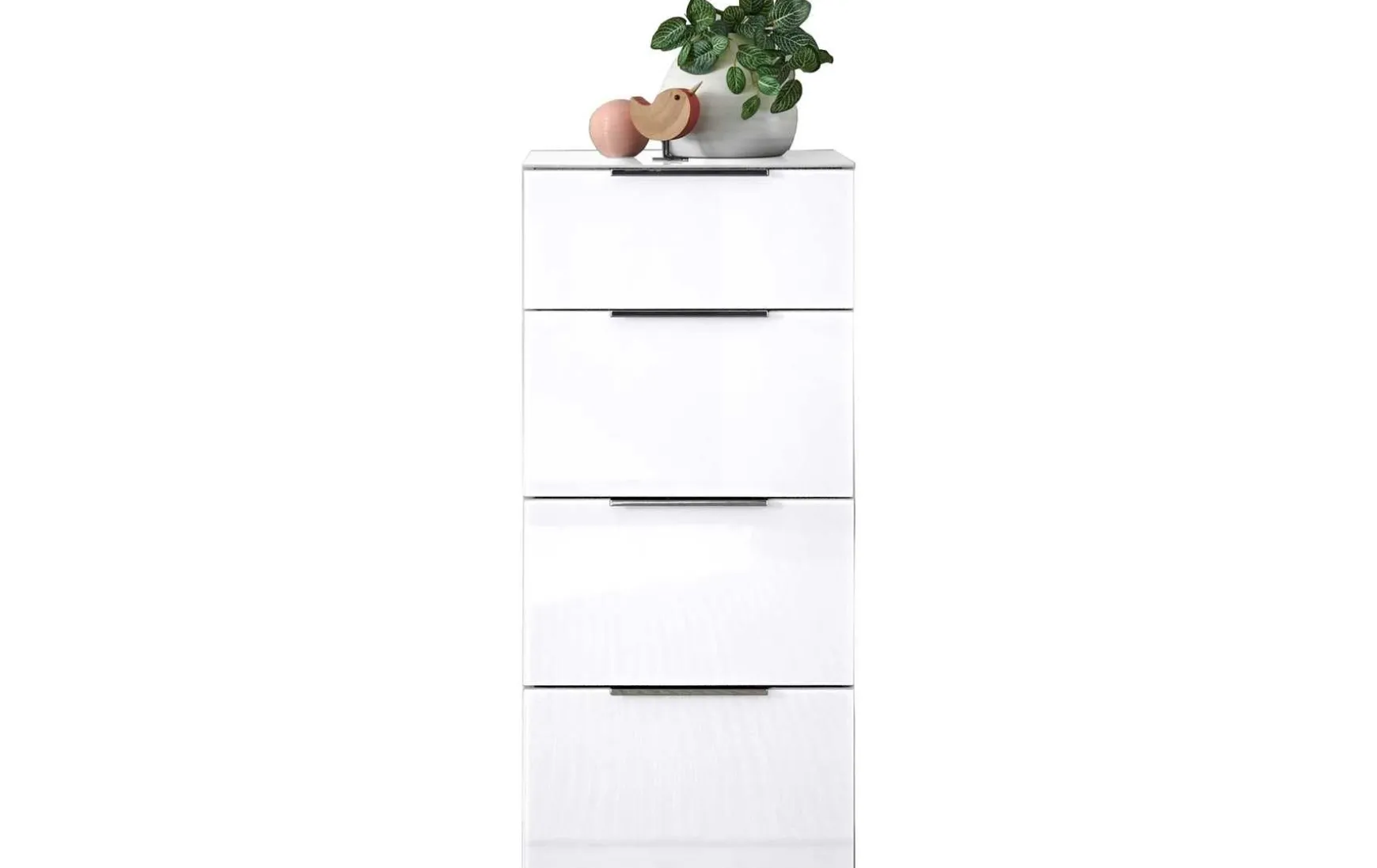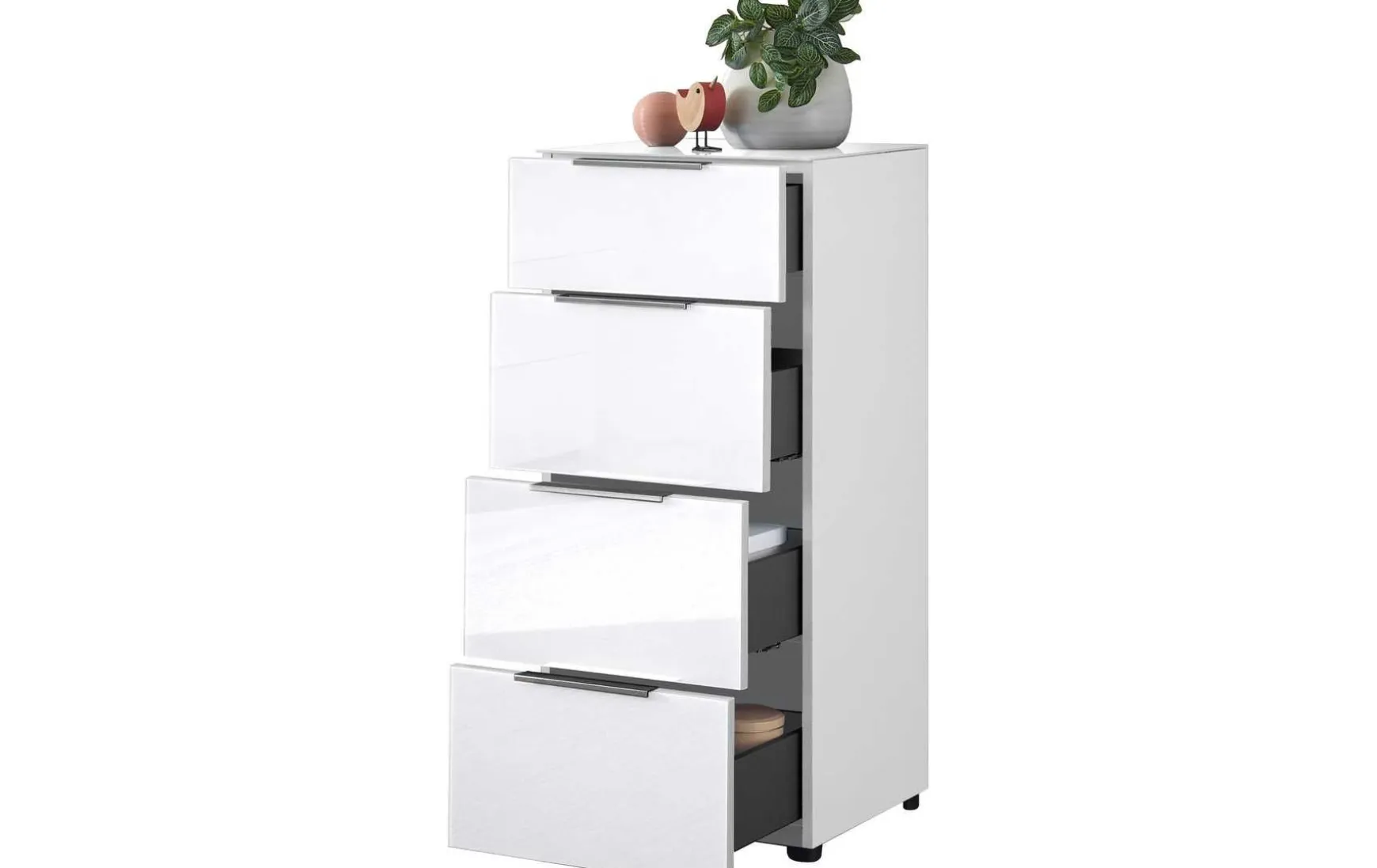 Mit kompakten ca. 45 × 99 × 40 cm passt diese Kommode fast überall hinein und bietet trotzdem beachtlichen Stauraum. Ausgestattet mit 4 Schubkästen, ist sie ein echtes Ordnungswunder. Ob im Flur, Schlafzimmer oder Wohnzimmer – sie fügt sich dank der Glasfronten harmonisch ein und überzeugt durch robuste Alltagstauglichkeit. Besonders der günstige Preis macht sie zu einer idealen Lösung für alle, die Wert auf modernes Design und Funktion legen.