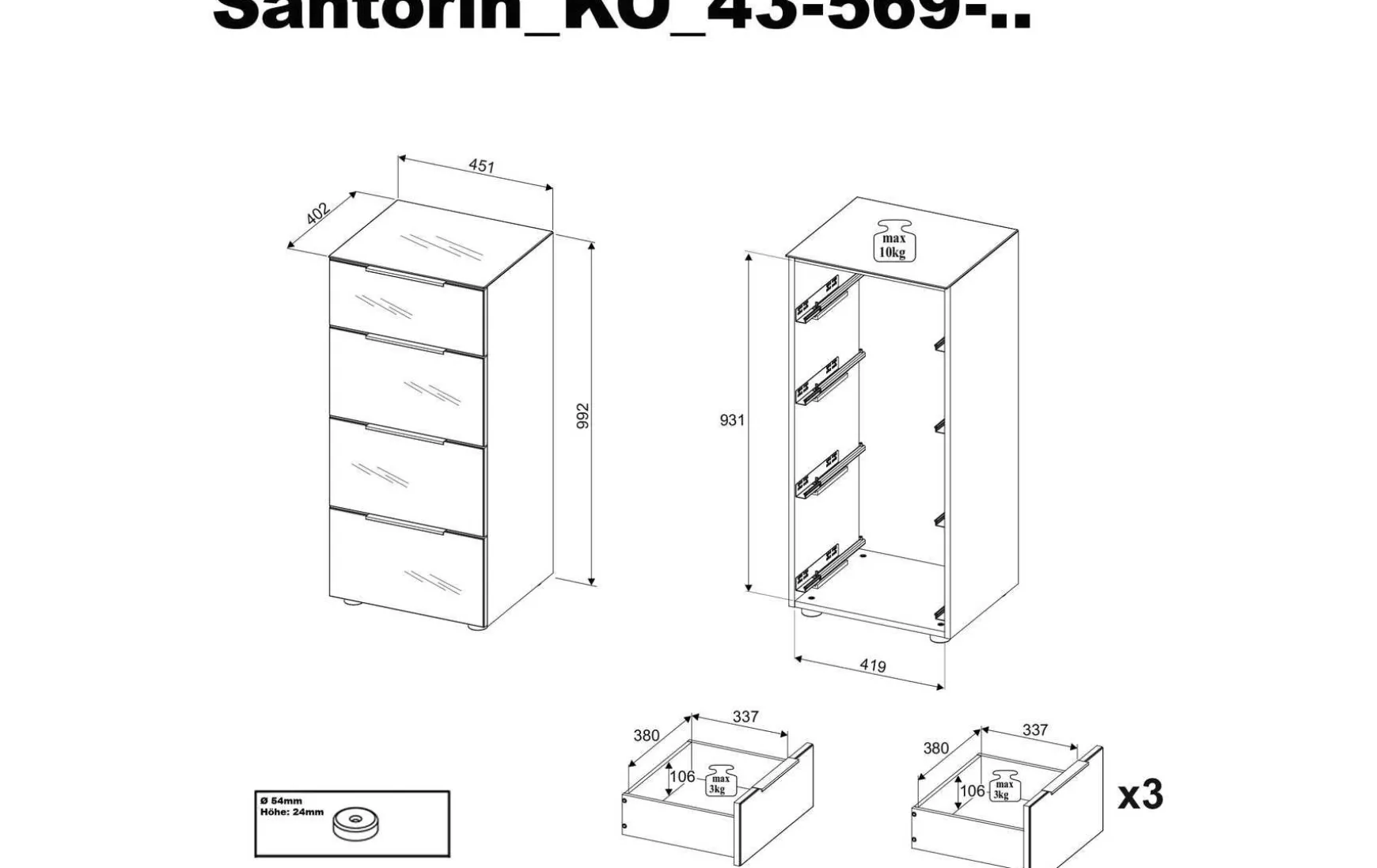 - Artikelinhalt: 4x Schubkästen, 4x Griffe