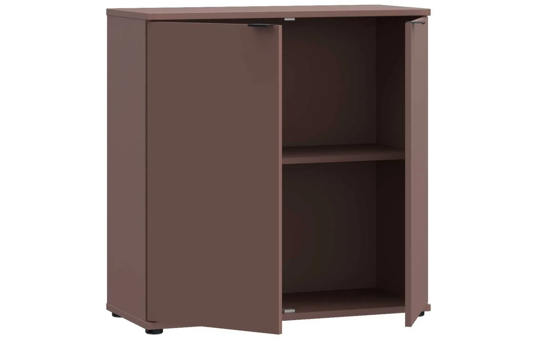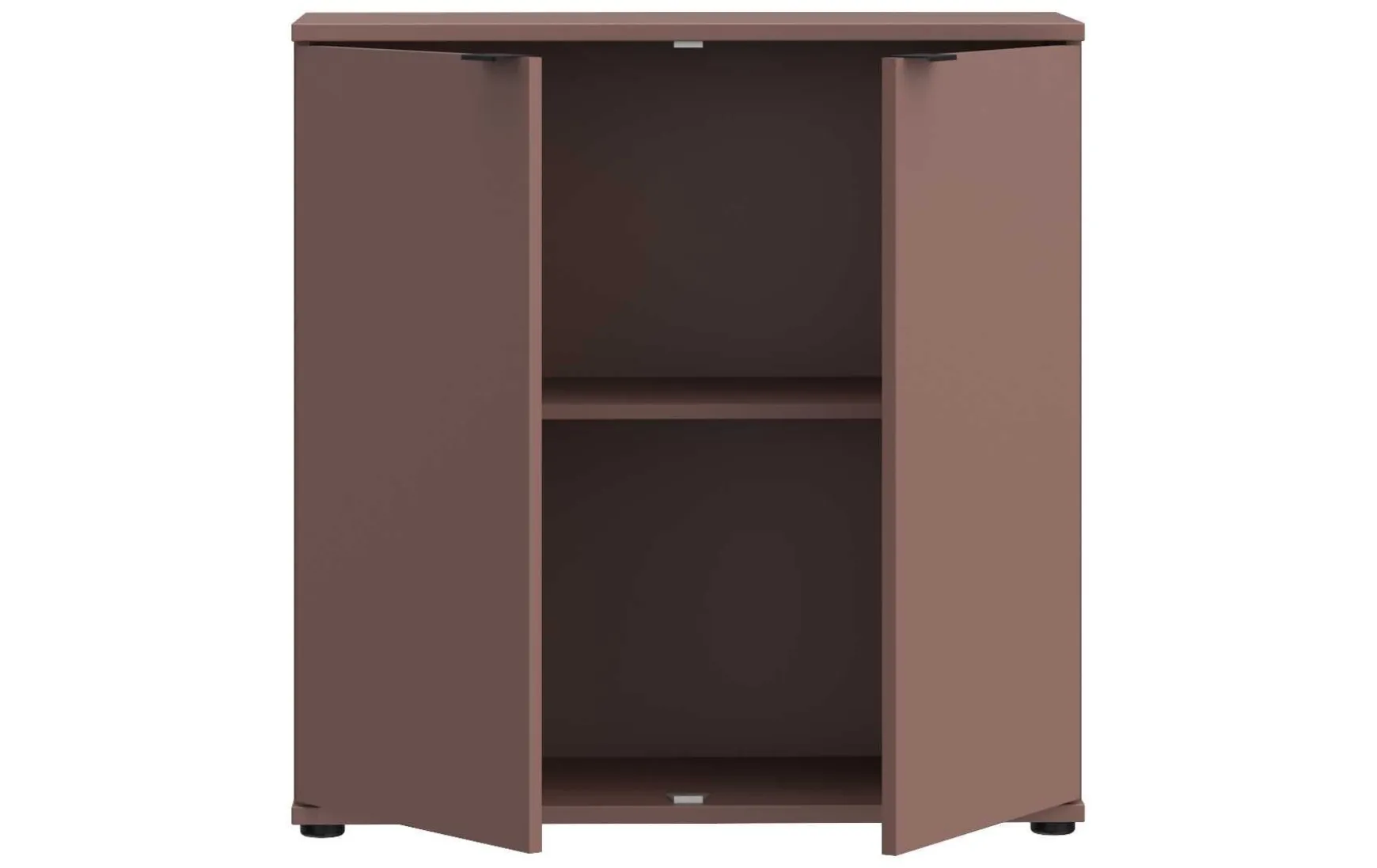 Diese kompakte Kommode in Terracotta-Rot vereint modernes Design mit praktischer Funktionalität und bringt einen farblichen Akzent in jeden Wohnbereich. Der kräftige Rotton sorgt für warme, lebendige Akzente und lässt sich ideal mit modernen oder farbenfrohen Einrichtungskonzepten kombinieren. Hinter den zwei Drehtüren bietet die Kommode großzügigen Stauraum für Haushaltsgegenstände, Dekoration oder persönliche Dinge. Gefertigt aus robustem Holzwerkstoff, ist die Kommode langlebig, stabil und pflegeleicht. Mit den Maßen von ca. 80 × 34,1 × 82,3 cm (B/T/H) ist sie kompakt und platzsparend, bietet aber dennoch ausreichend Stauraum.