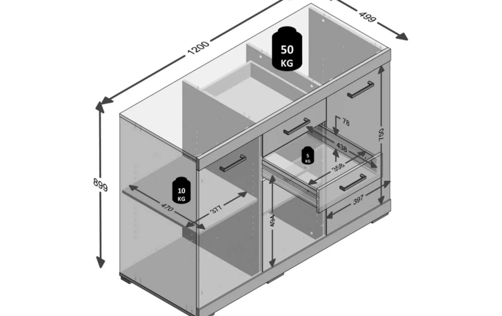 Schubkästen bis max. 5 kg belastbar